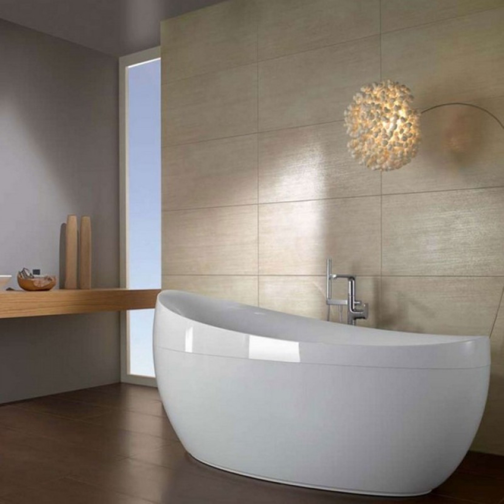 Bathtub in Quaryl® FREESTANDING, particularly resistant to shocks, blows and scratches. Quaryl®combines the best properties of natural quartz with the universal versatility of high quality acrylic resins. Quaryl® can be molded, is durable, smooth to the touch, color and shine will remain unchanged for years, for a design with a long-lasting appearance.
