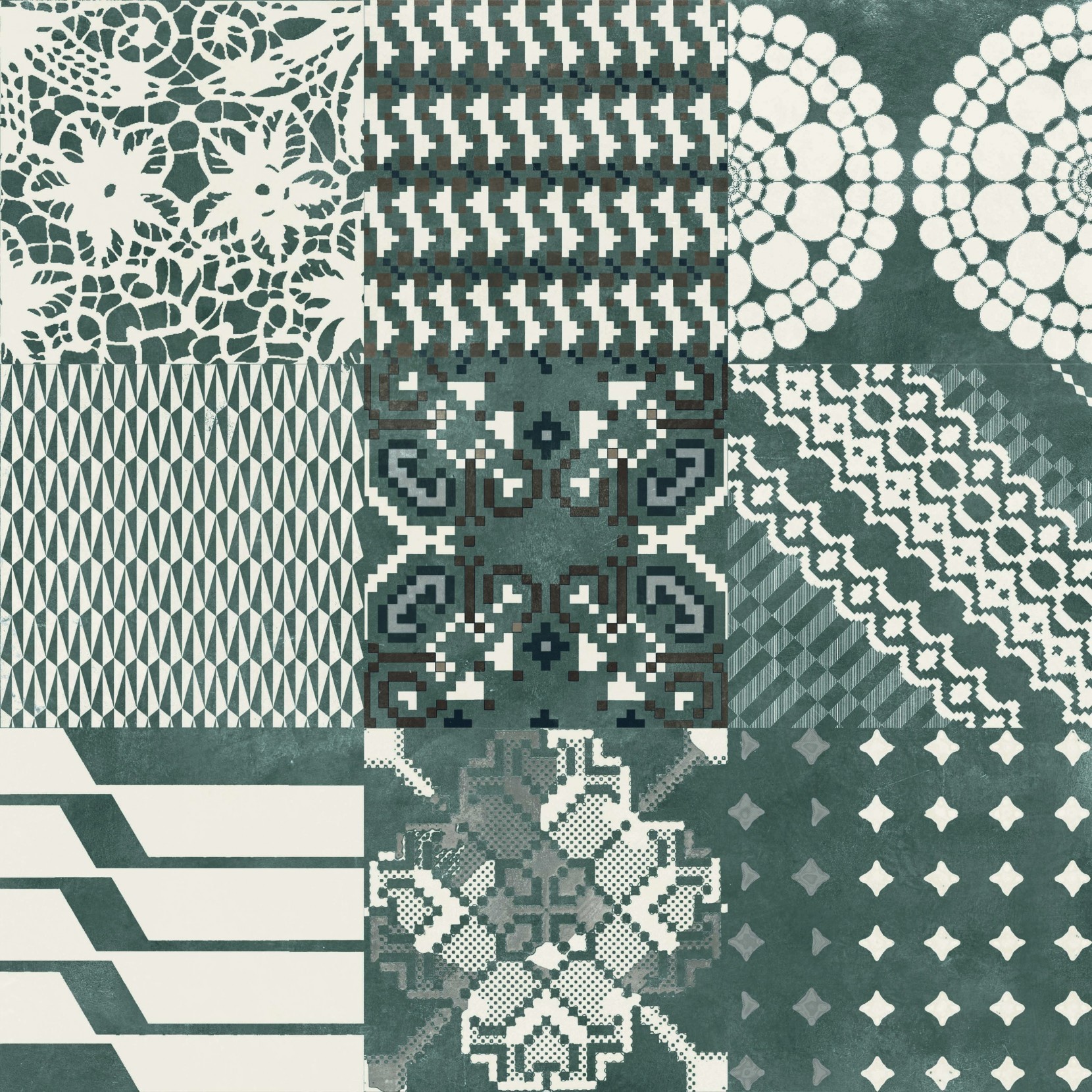 A reinterpretation of the patchwork composition, this collection is made in 20x20 cm format an innovative casual mix.