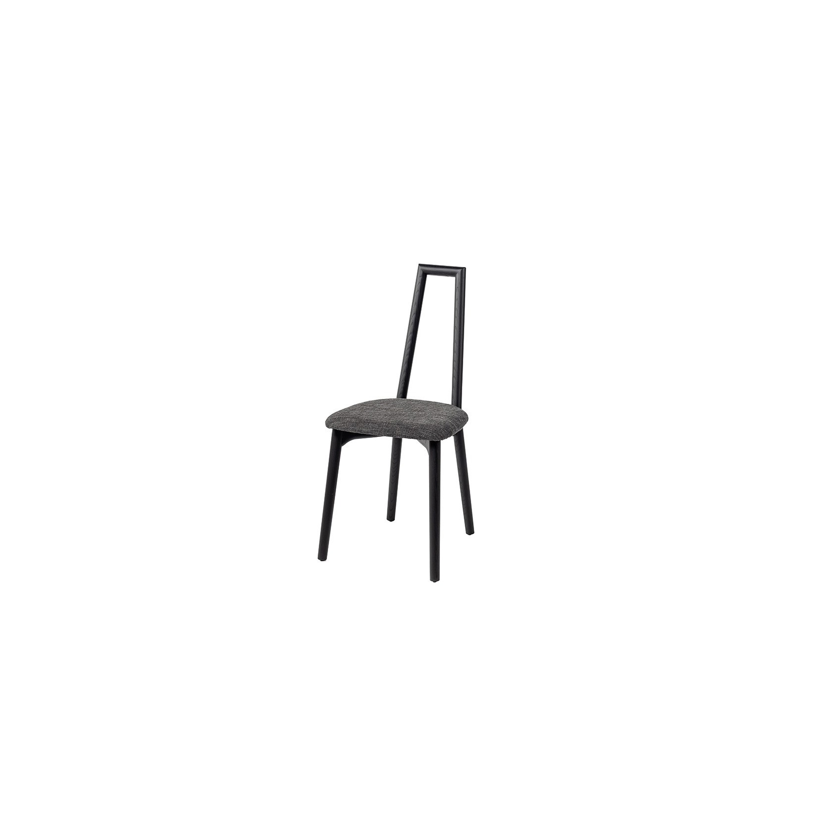 Design chair with a solid ash wood frame; its distinctive feature is the backrest, tapered back that lends an air of modern sophistication, designed for indoor use.