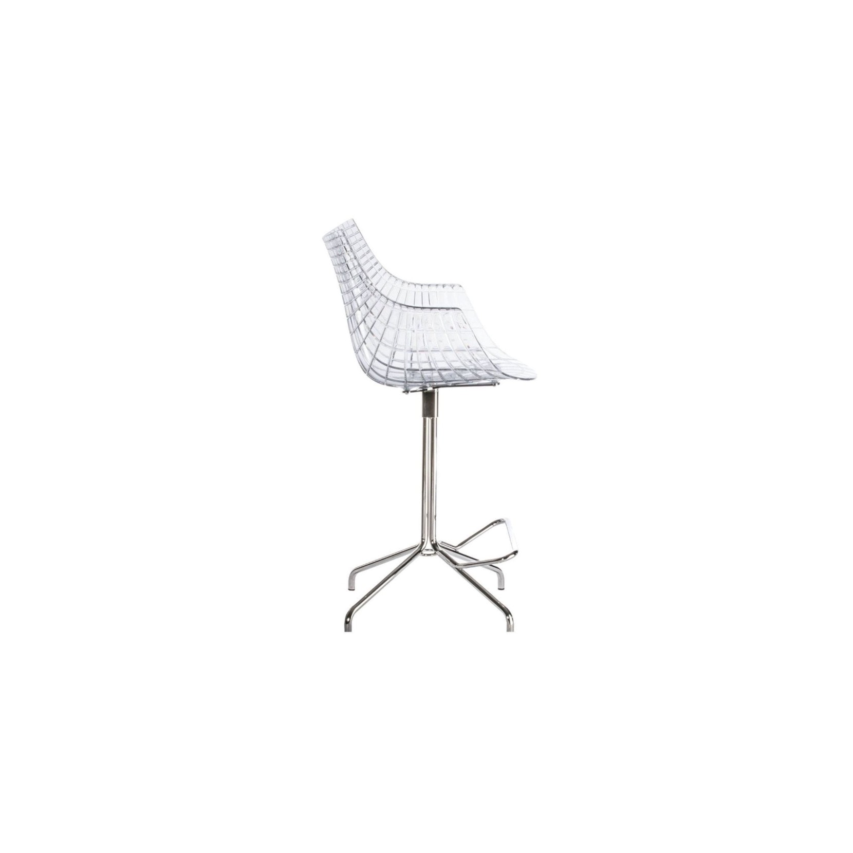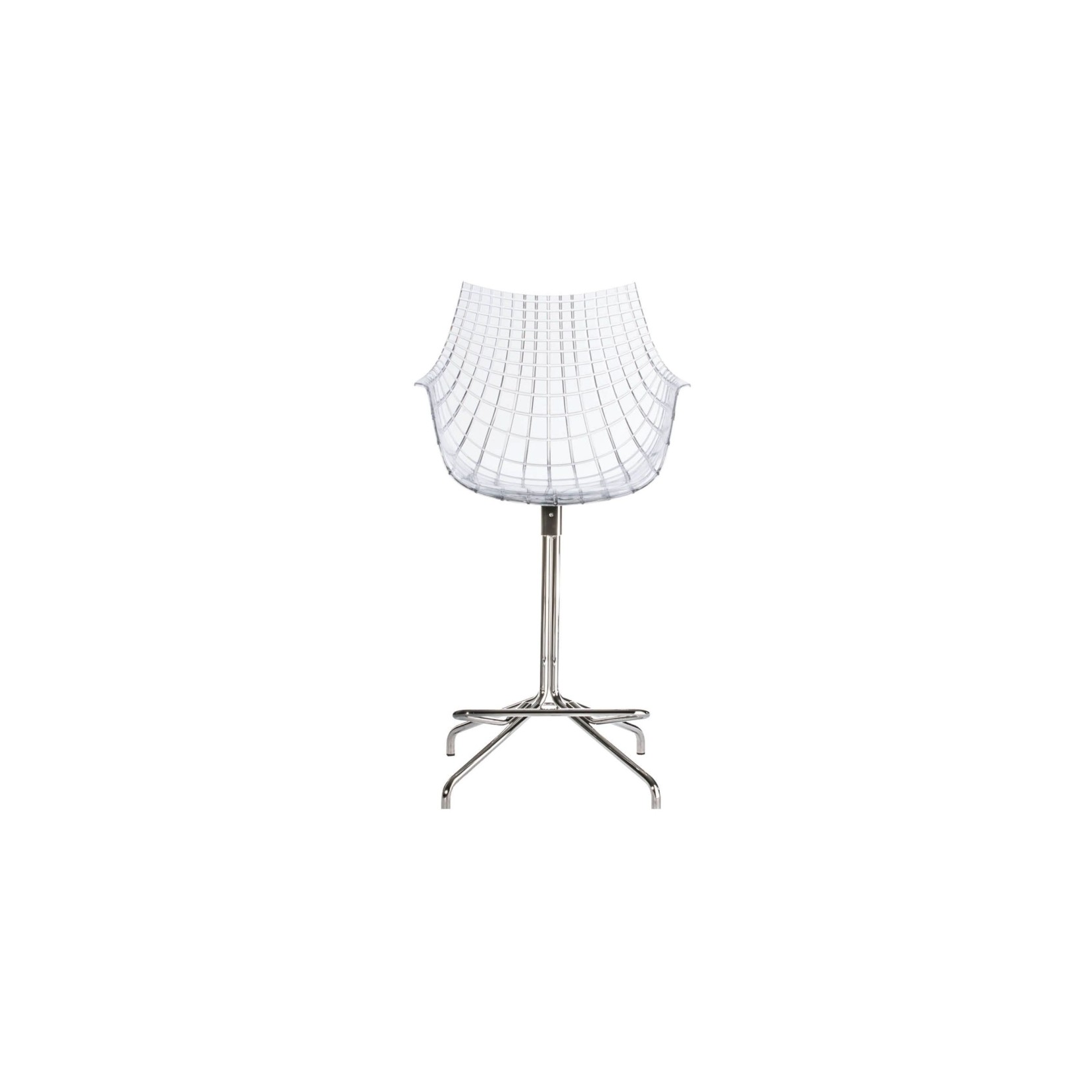 Meridiana is the iconic seat designed by Christophe Pillet in 2004. This chair with diamond lines consists of a transparent polycarbonate shell and legs in chromed or black painted steel. Its unmistakable shape makes it unique and suitable for any environment, from the dining room to the office.