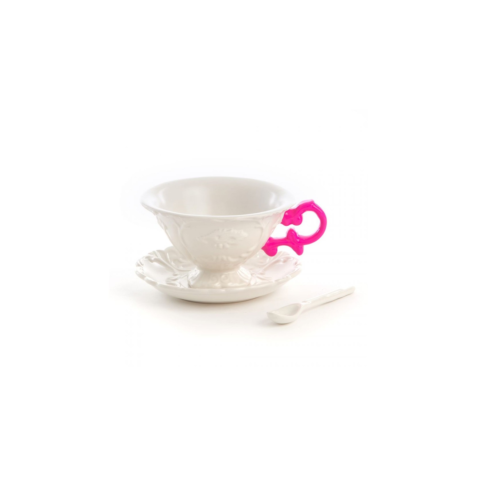Seletti with the I-WARES series proposed by the designer Selab is the table line in fine white porcelain curled by fluorescent handles or gold finish. The designer with this series of cups, teapots and sugar bowls of baroque inspiration has been able to make bright, elegant and sophisticated everyday objects.