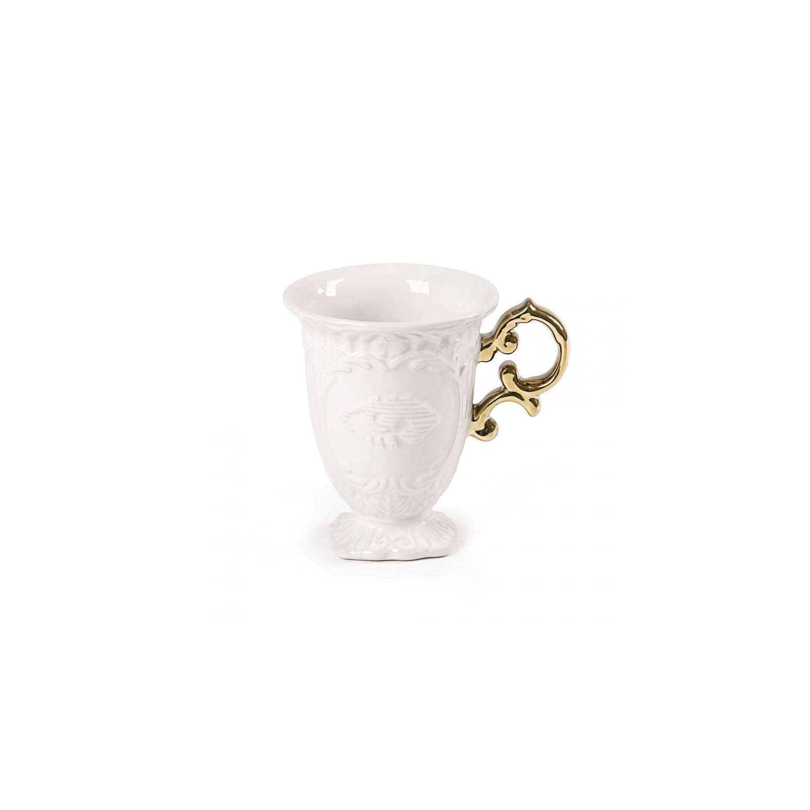 Seletti with the I-WARES GOLD series proposed by designer Selab is the table line in fine white porcelain curled by handles in gold finish. The designer with this series of cups, teapots and sugar bowls of baroque inspiration has been able to make bright, elegant and sophisticated everyday objects.