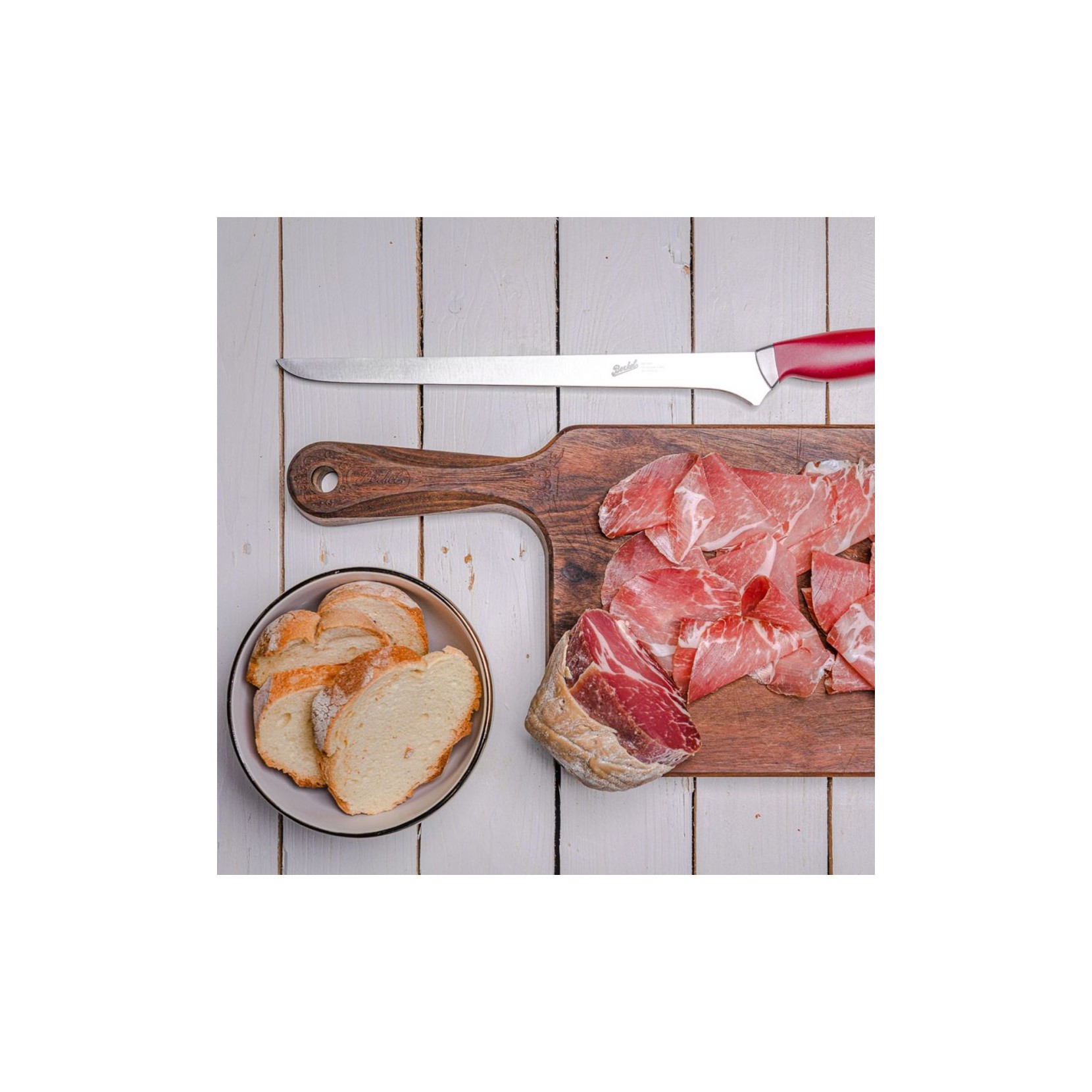 Flexible and handy knife. Thanks to the long and flexible blade, it allows to slice all types of sausages and sausages thinly, favoring consistency of thickness.