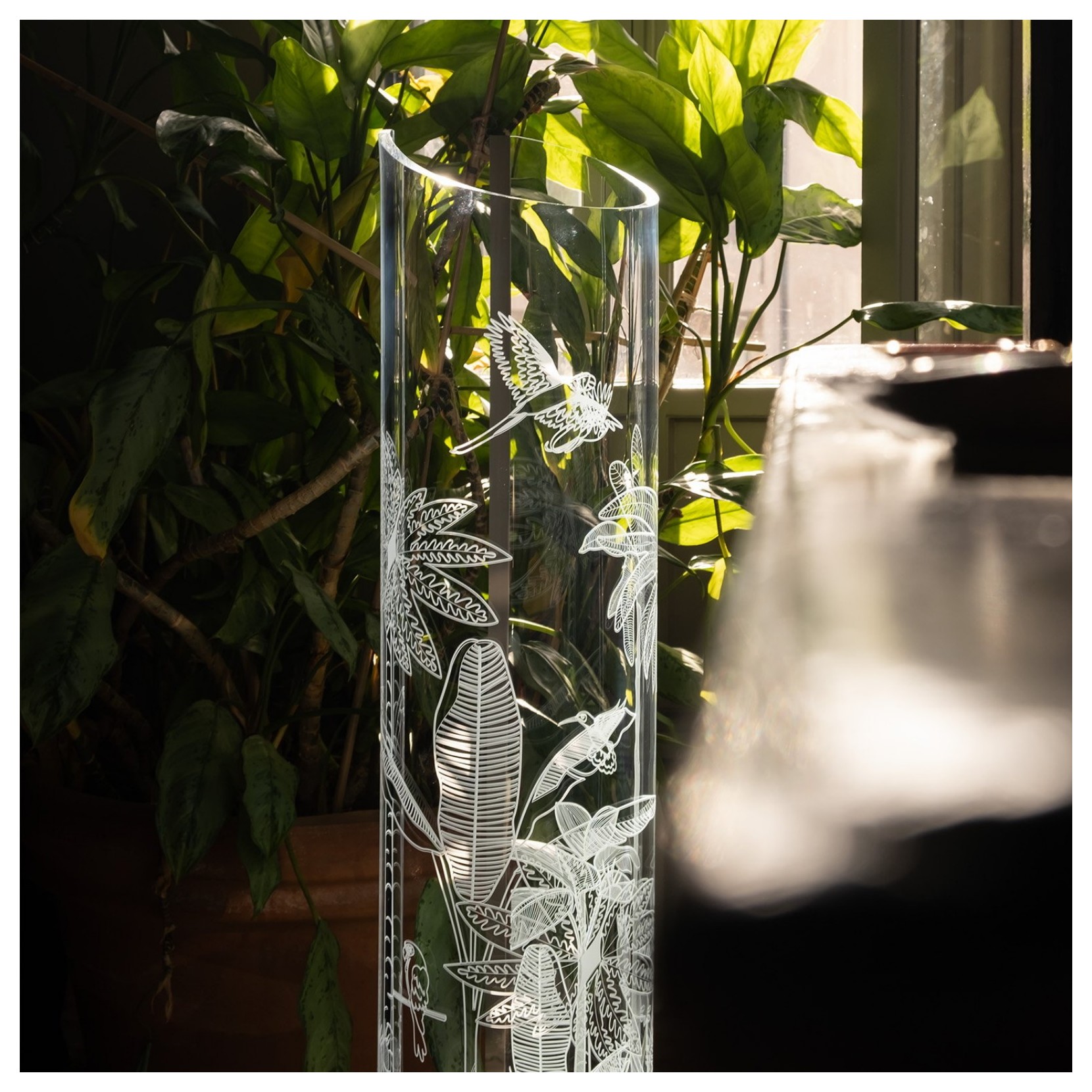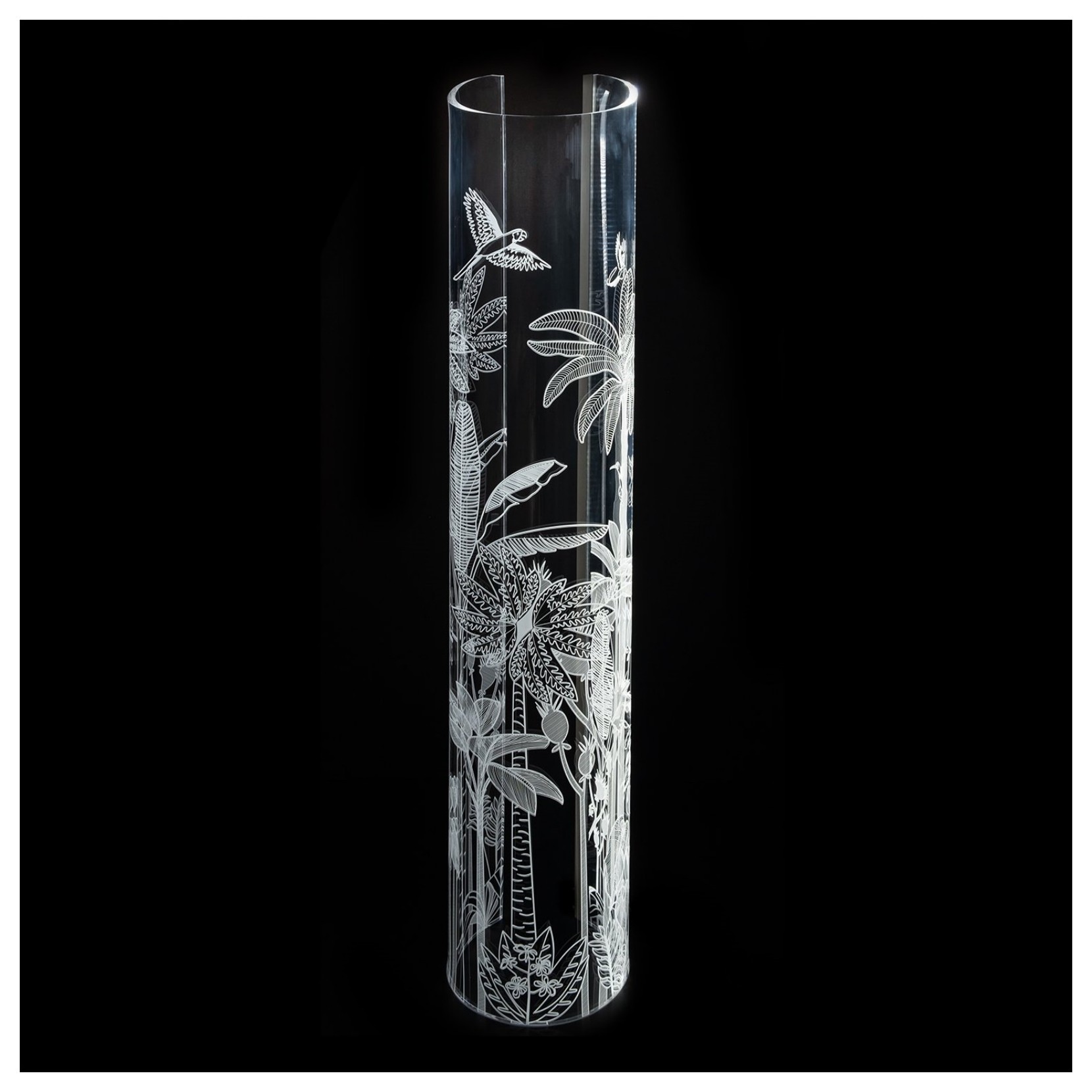 Wave is a design table lamp, made with a single sheet of acrylic crystal folded by hand, with leaves of precious materials incorporated.