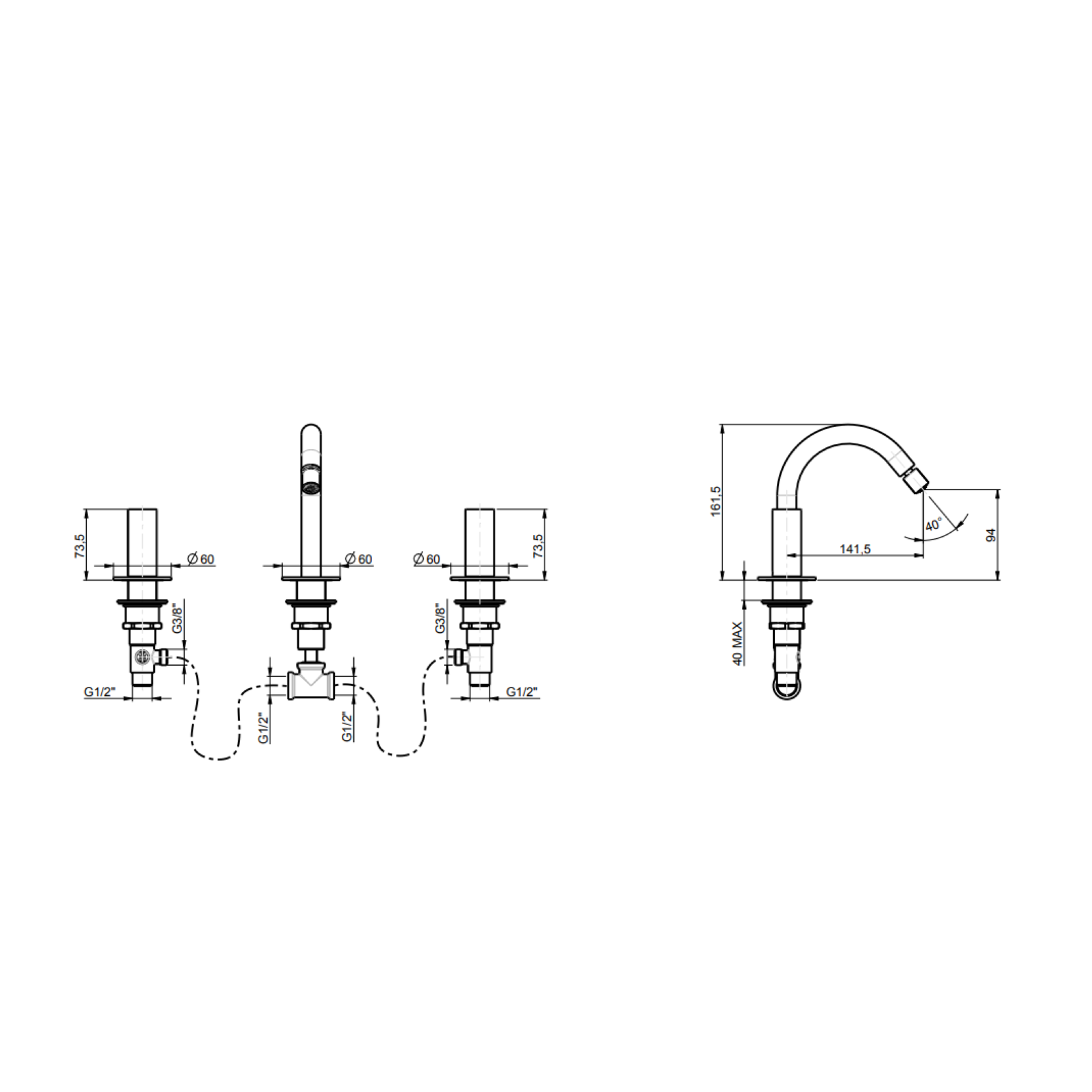 F.lli Frattini Pepe M Style, Bidet battery with fixed high mouth without drain