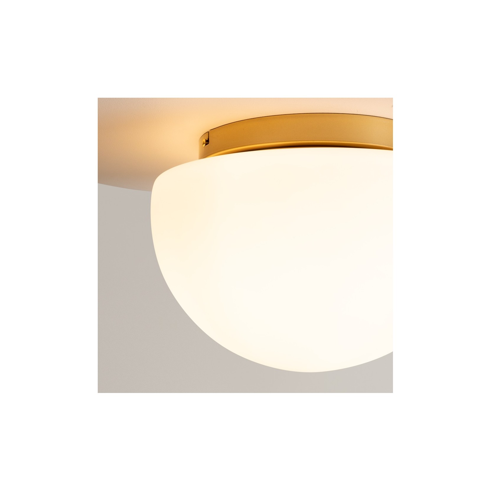 The Glassy ceiling light transforms the ceiling into a magnetic focal point thanks to its hemispherical shaded glass diffuser. Featuring a mirrored silver finish that gradually fades toward transparency, this lamp creates an intriguing visual interplay: when off, it appears as a sculptural metallic solid, while when on, it reveals the luminous heart within, diffusing a warm and glare-free light.