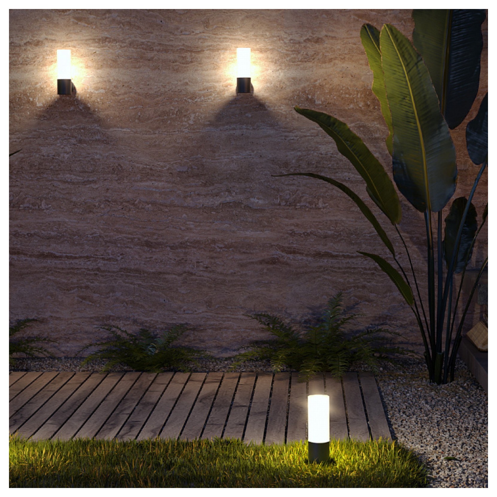 The WILLIS outdoor floor lamp has a design designed to adapt to the various styles of your home. The metal structure is in black or grey finish with white cylindrical diffuser.