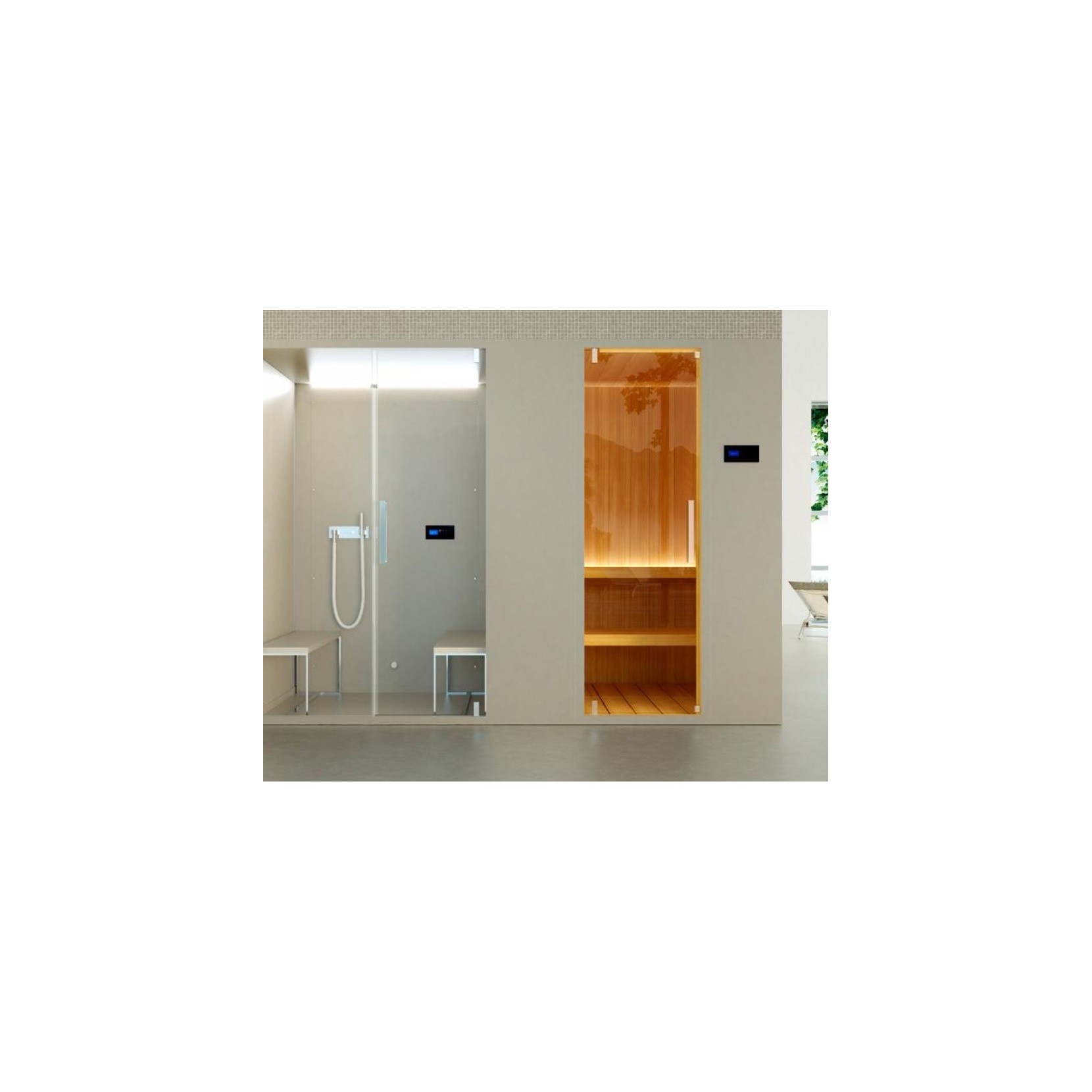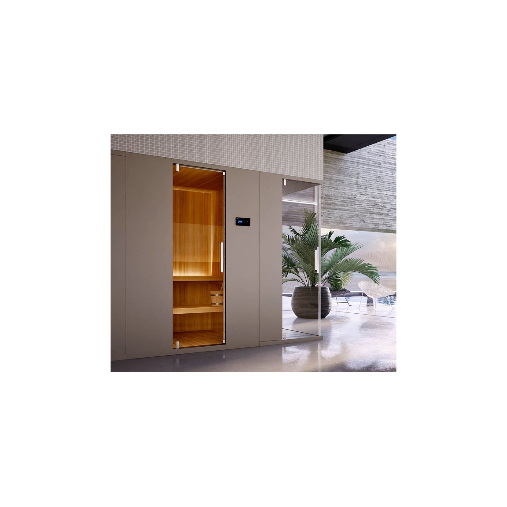 Pasodoble is a Finnish sauna that can be requested in two sizes: cm 160x110 (3 Kw)_160x140 (4,5 Kw), h215