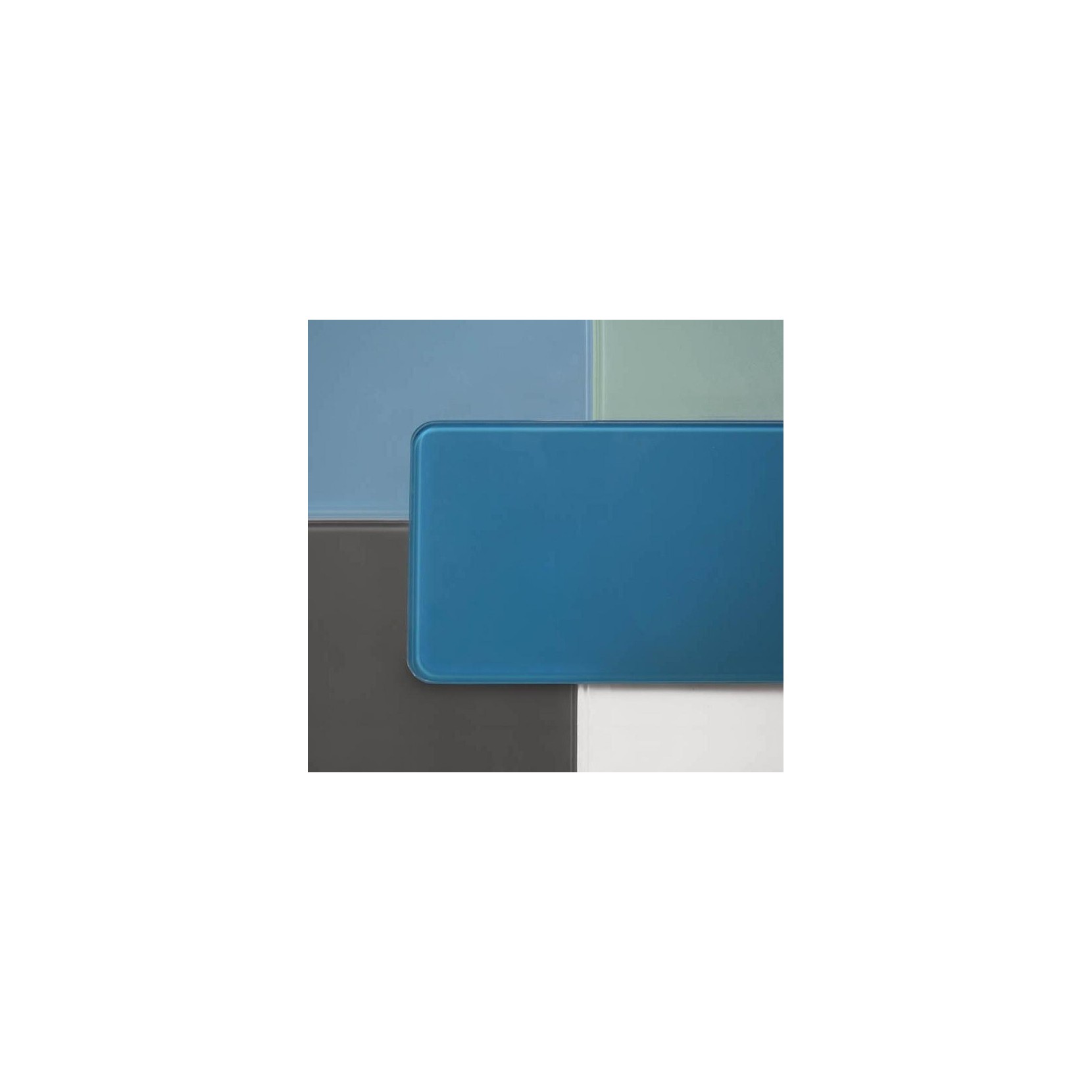 Azulejo is a shelf with front in steel painted anthracite gray or colored glass.