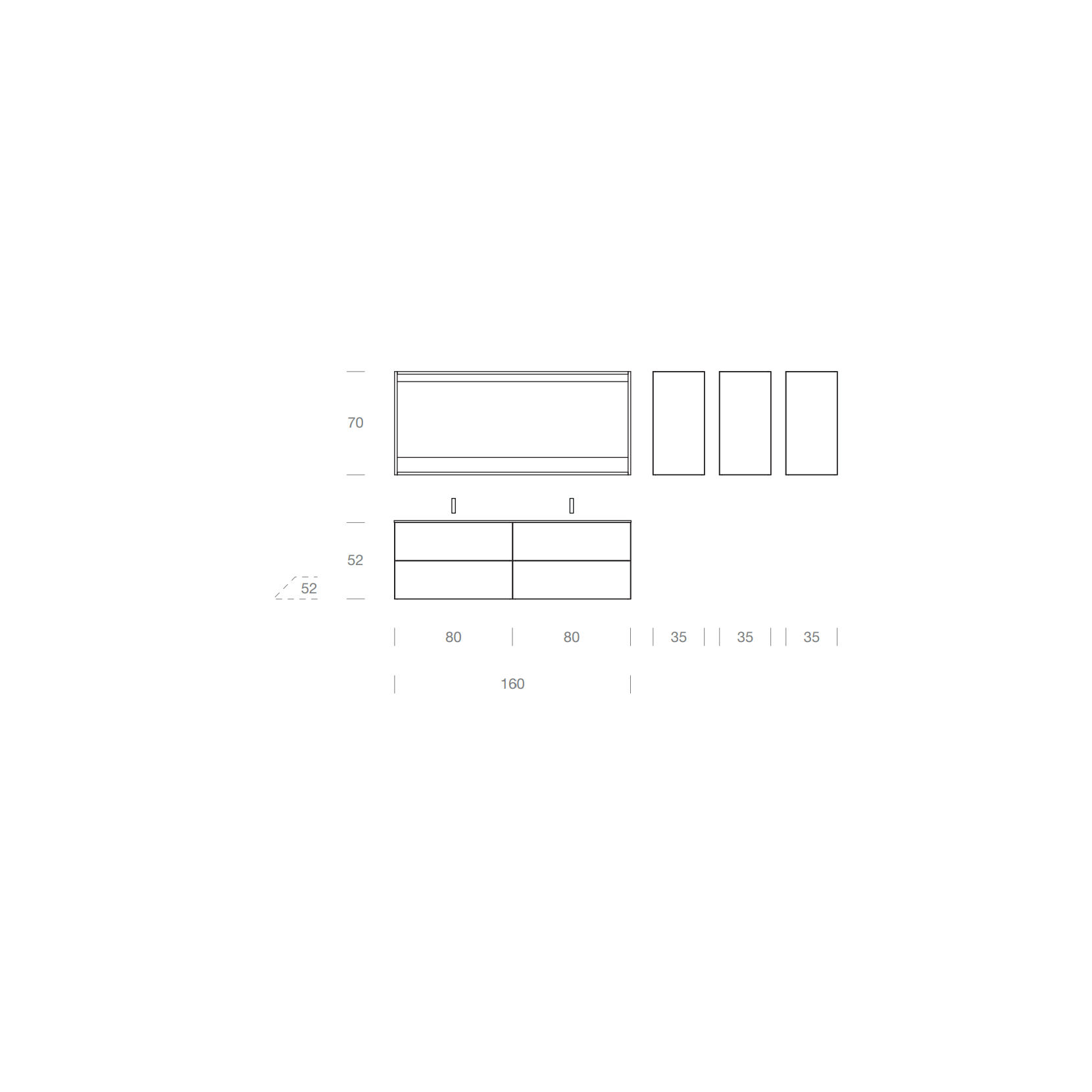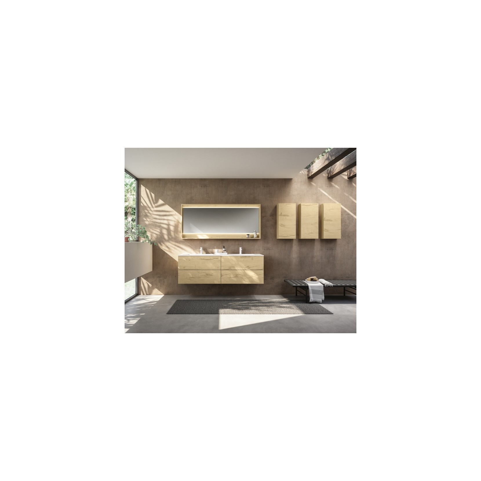 Wash-basin base units in 960 Nativo Naturale wood finish, white Tecnolite top. Uniko mirror and wall units in 960 Nativo Naturale wood finish.