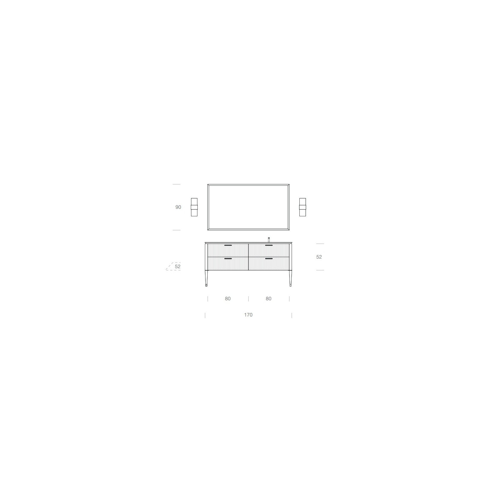Chrome underneath top and handles. Diamond-cut mirror with lamps Dual finish chrome.