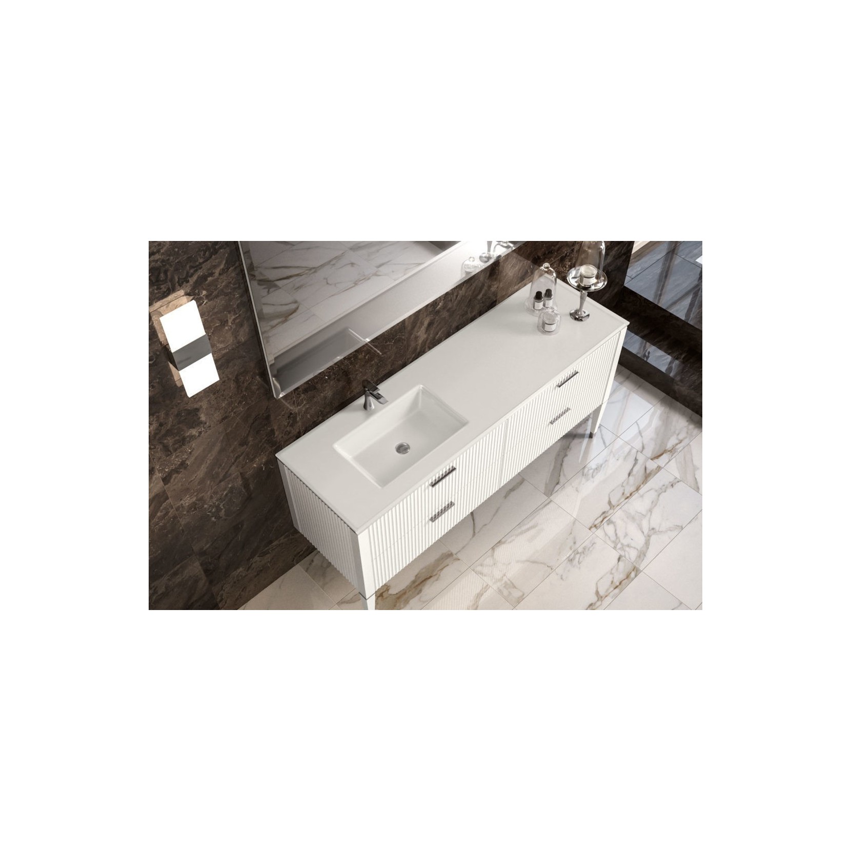 Wash-basin base unit, front and side covers Gessato 017 Latte matt. Glass top 017 Latte matt.