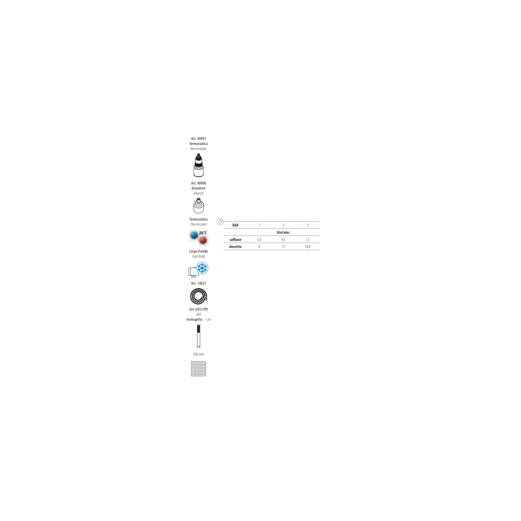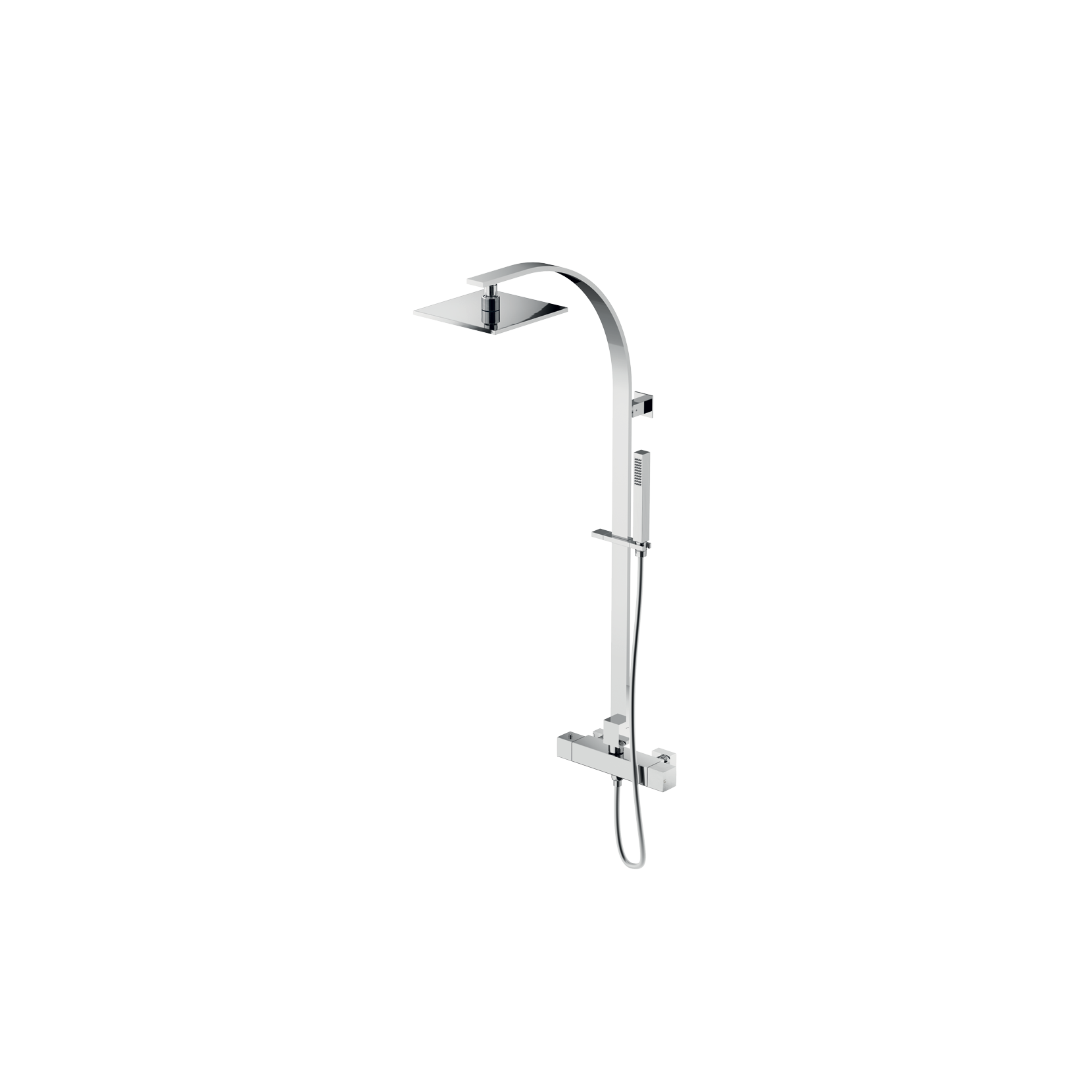 Brass Eexternal thermostatic mixer with cold body, shower column with anti-limestone shower head 200 mm and 1 jet hand-shower