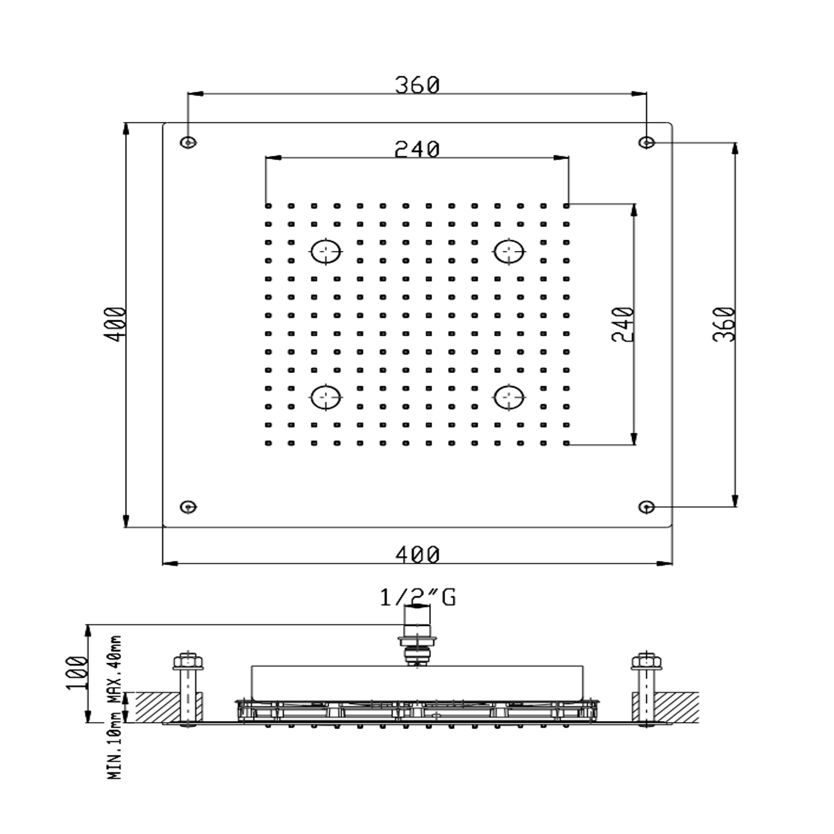 F.lli Frattini Docce Inox, Built-in shower head 40x40 cm