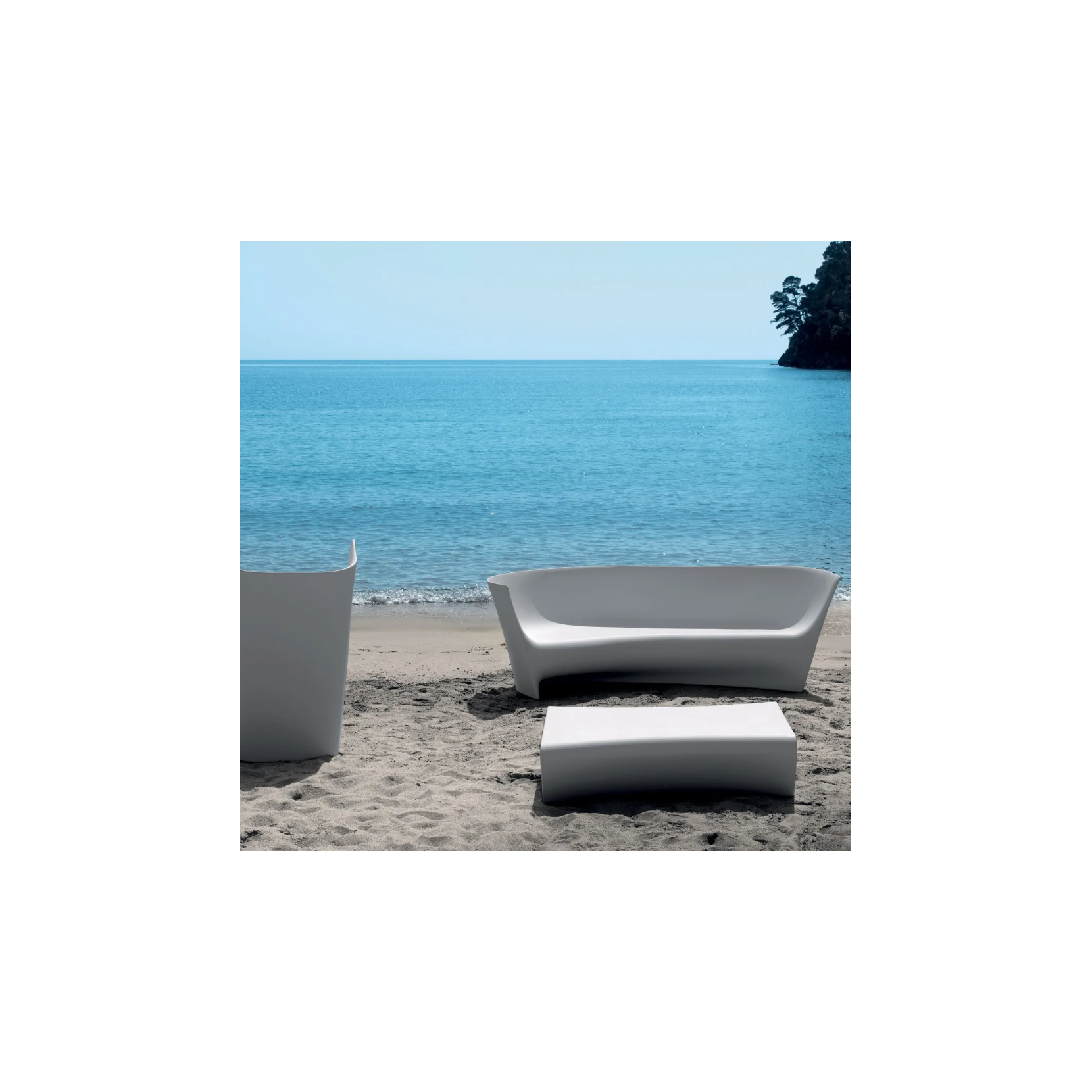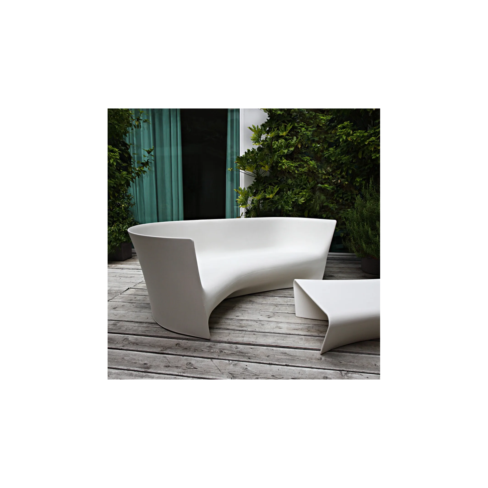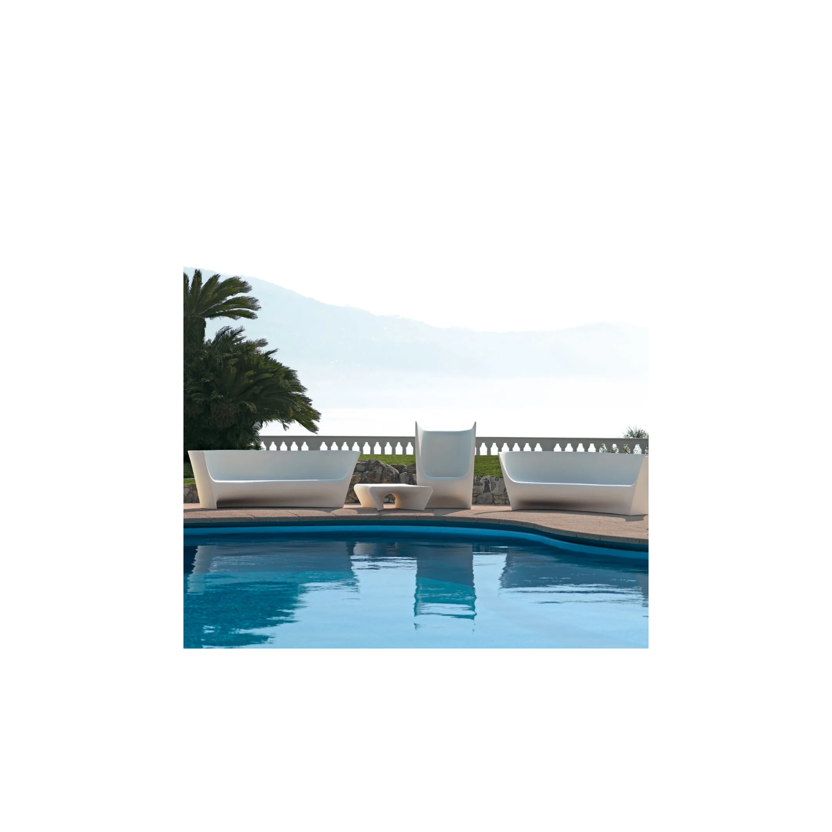 An elegant polyethylene sofa designed for conversation. Grand Pliè is as welcoming as an embrace and allows those who will sit to find their ideal location given its delicate shape. The collection is enriched with the harmonious armchair Pliè and the coffee table Piaffè.