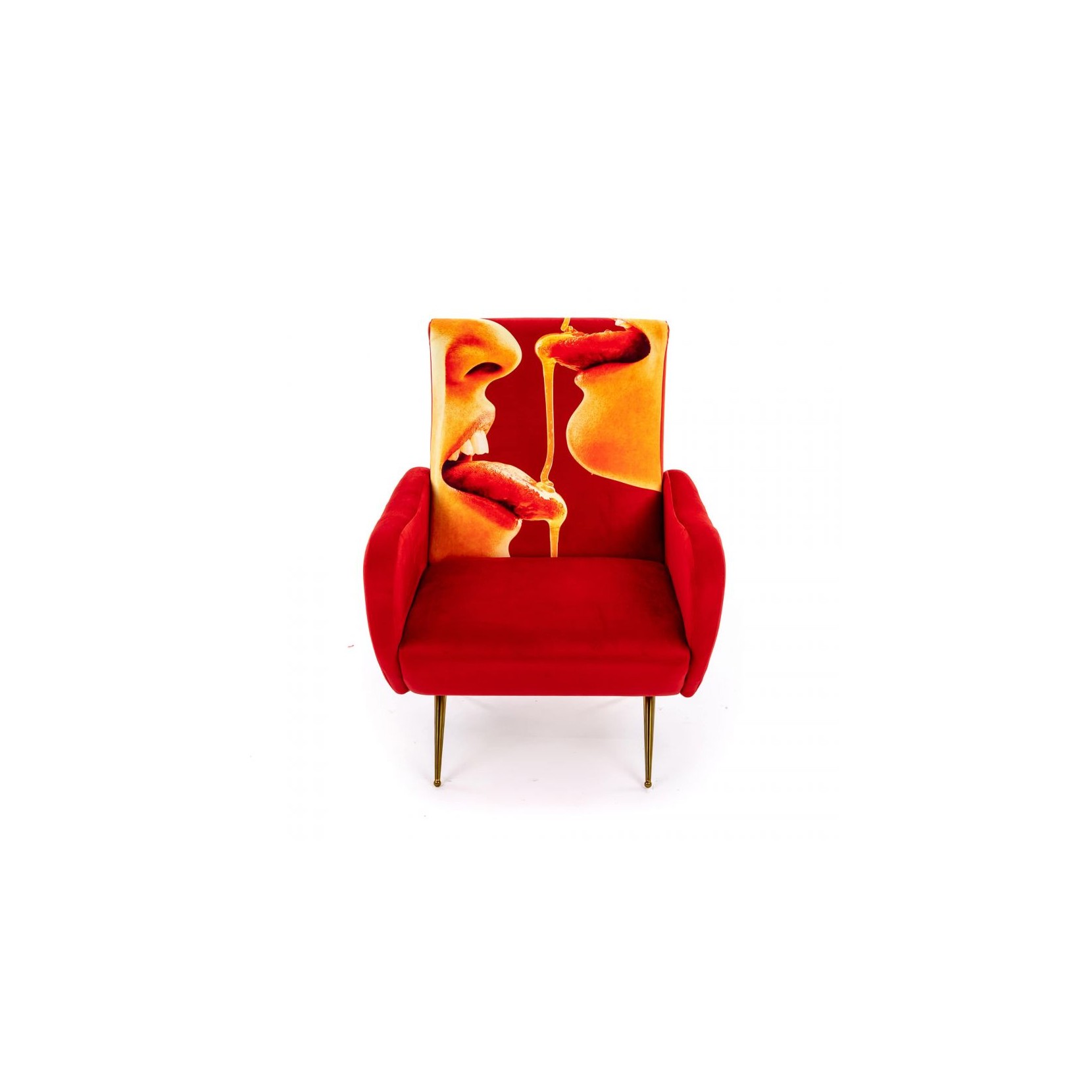 SELETTI with the series of armchairs designed by the designer Toiletpaper pays tribute to the traditional armchair in the 50s style with extravagant images.