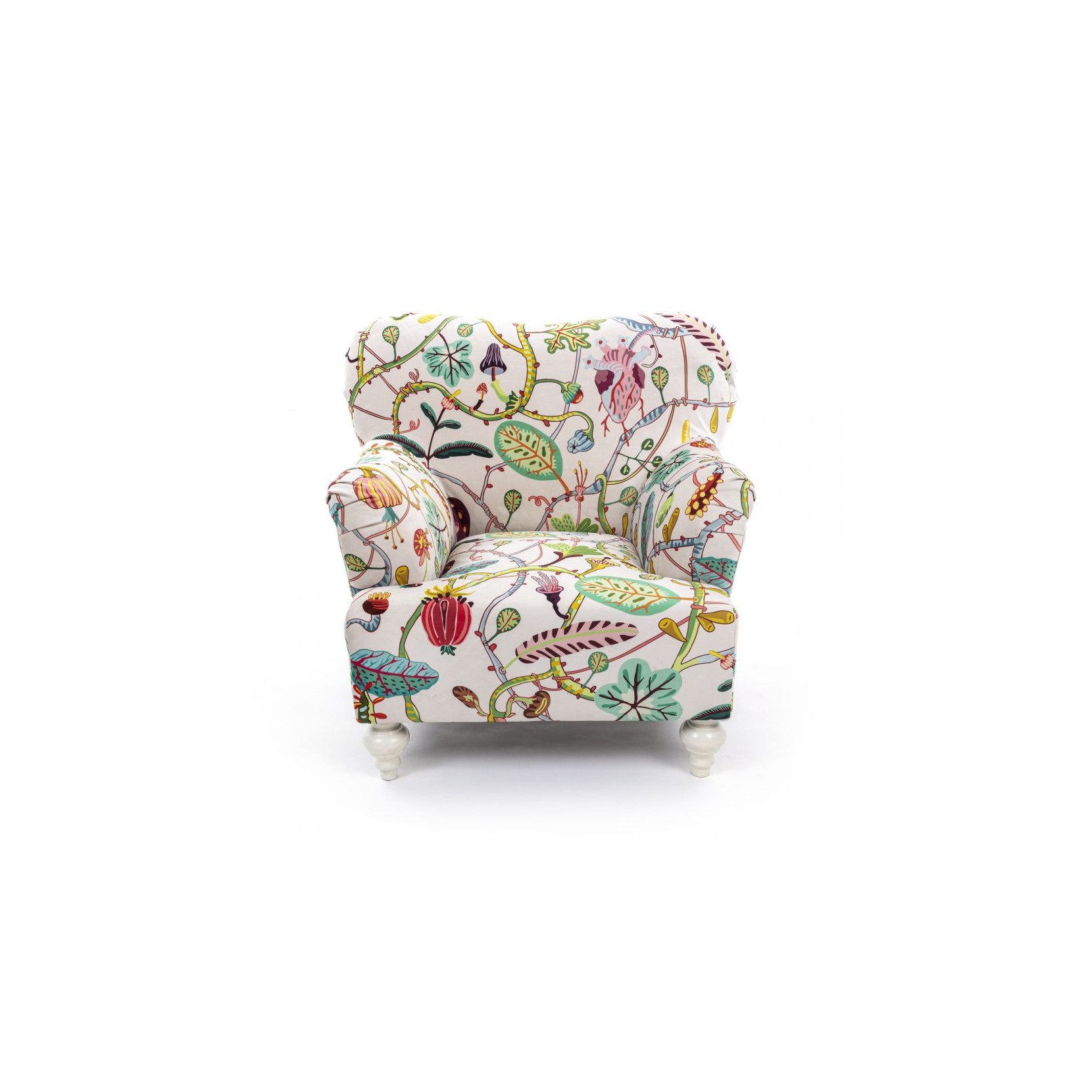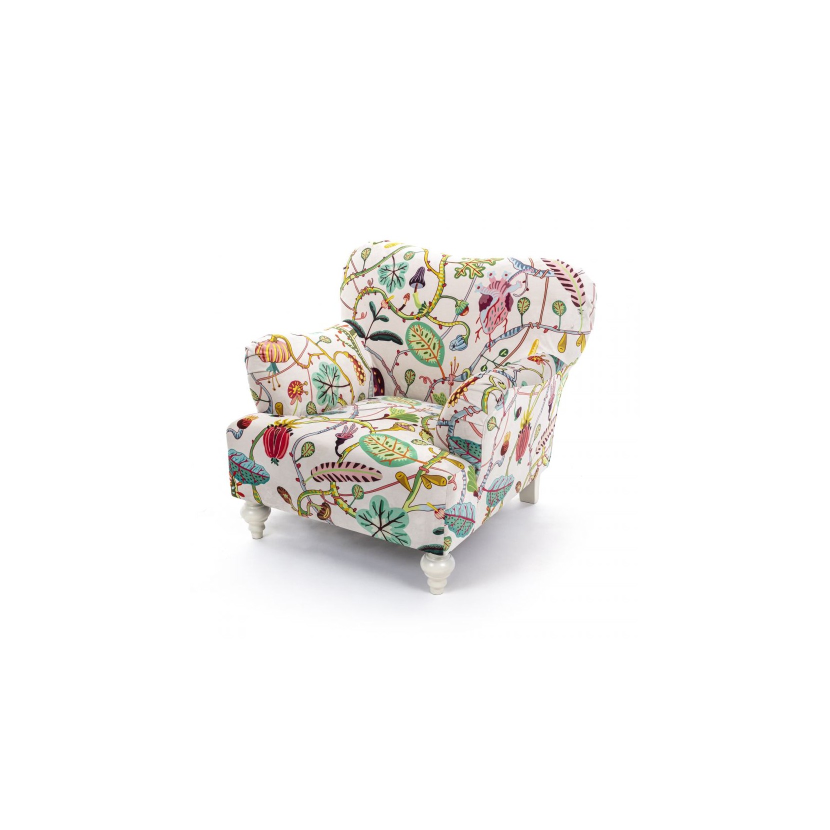 The Botanical Diva armchair is the series dedicated to the floral pattern with sensual and comfortable shapes with a clear reference to the 1950s taste with a touch of lightheartedness and delicacy.