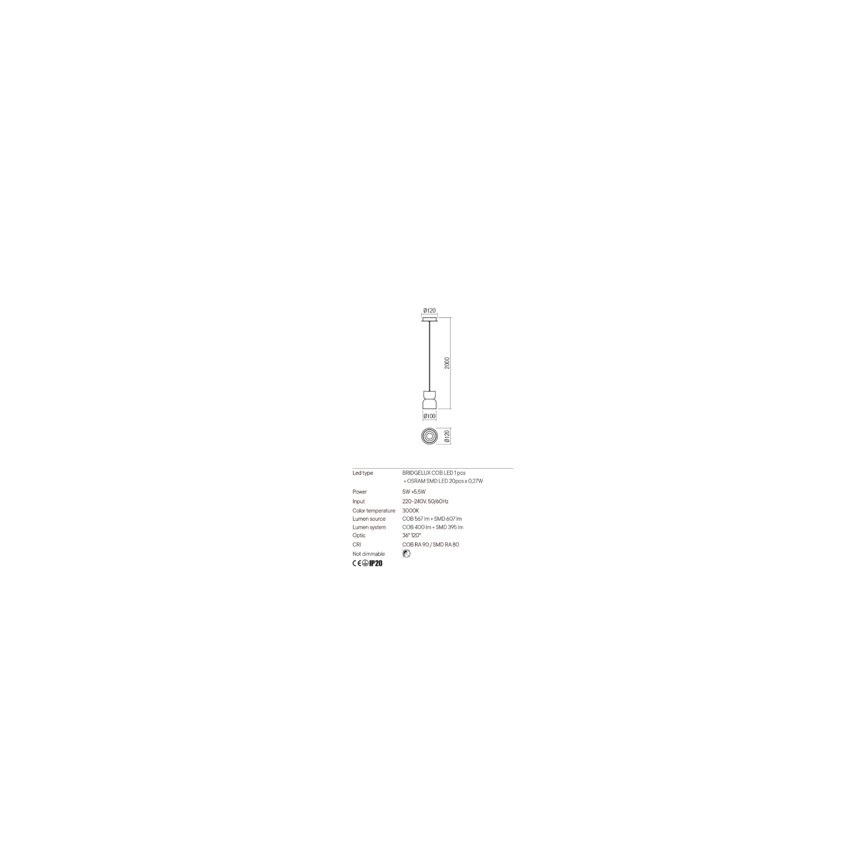 The YONA pendant lamp with direct/indirect light emission equipped with LED COB and SMD LED, aluminum and metal structure available in the following variant: