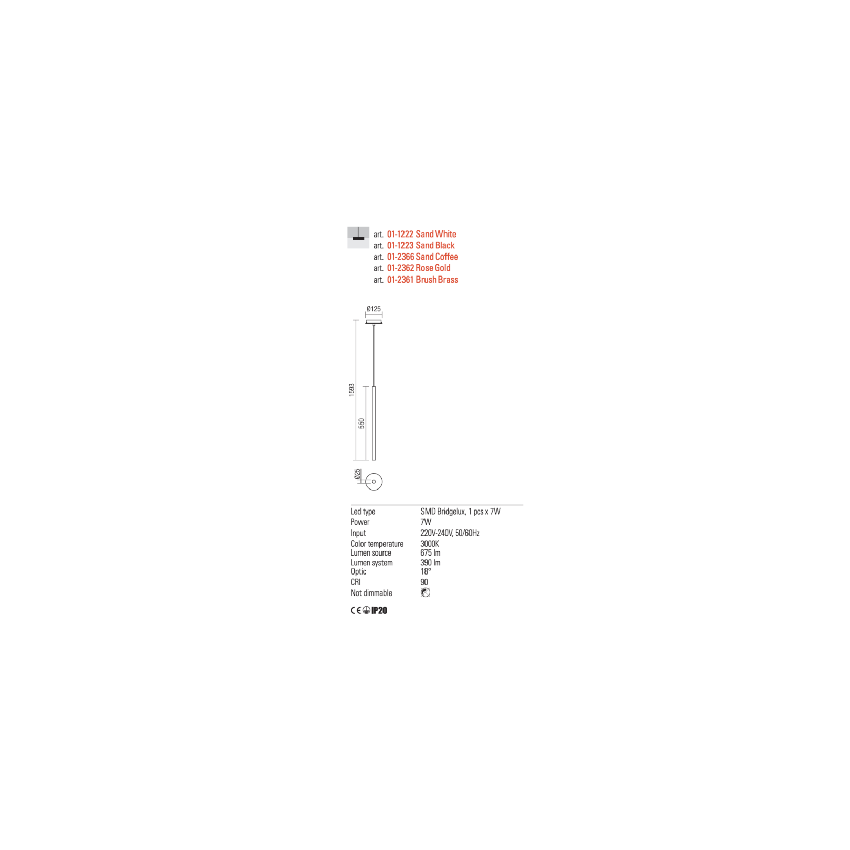 The pendant lamp KANJI is equipped with mechanism POWER LED powder-coated metal structure: