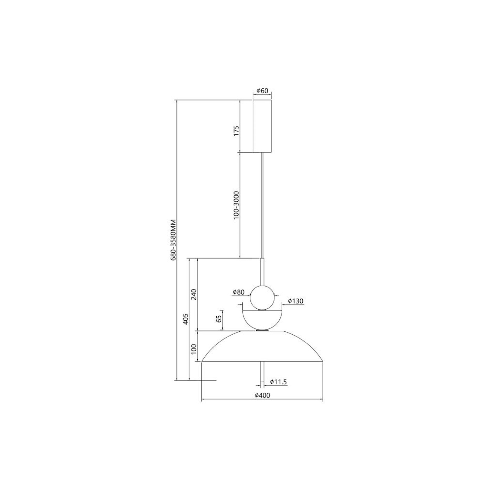 The light source is LED with color temperature 3000K. The length of the cables is adjustable.