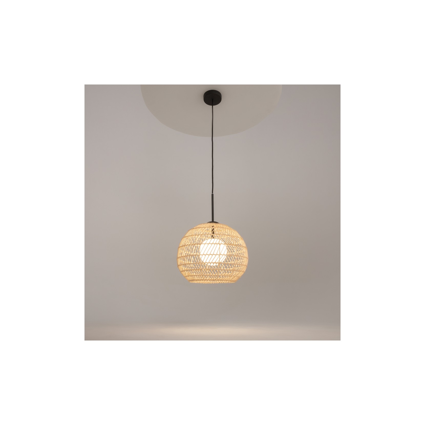 When the light is on, the sphere seems suspended, almost floating, creating a light and suggestive visual effect.