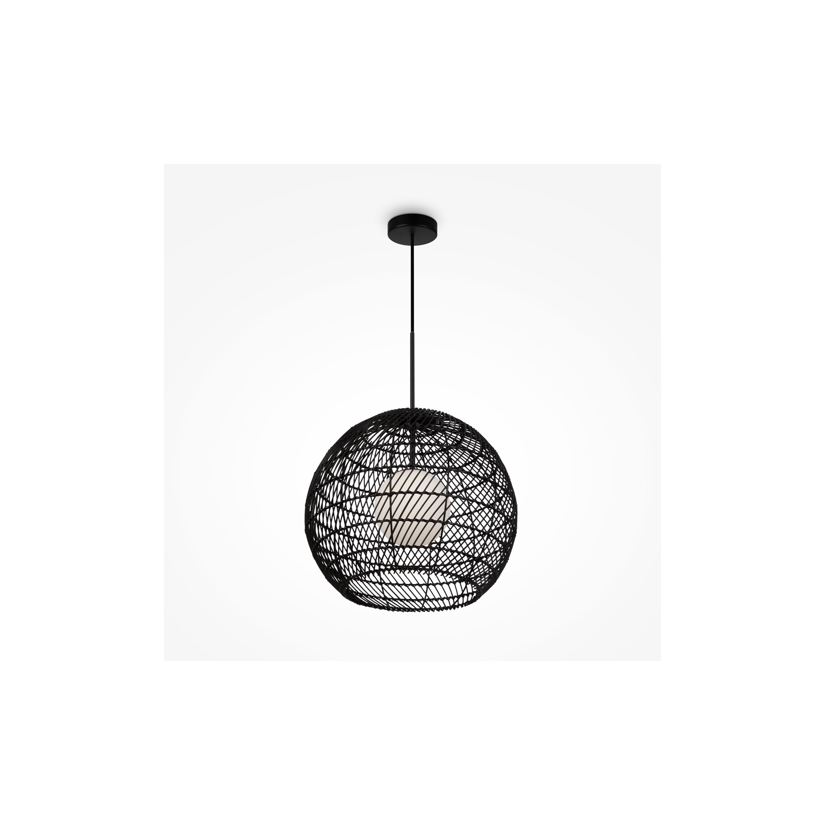 The lampshades are made of metal with black and beige finish, while inside there is a white opaque sphere that acts as a diffuser, hidden by a bulb with G9 mount.