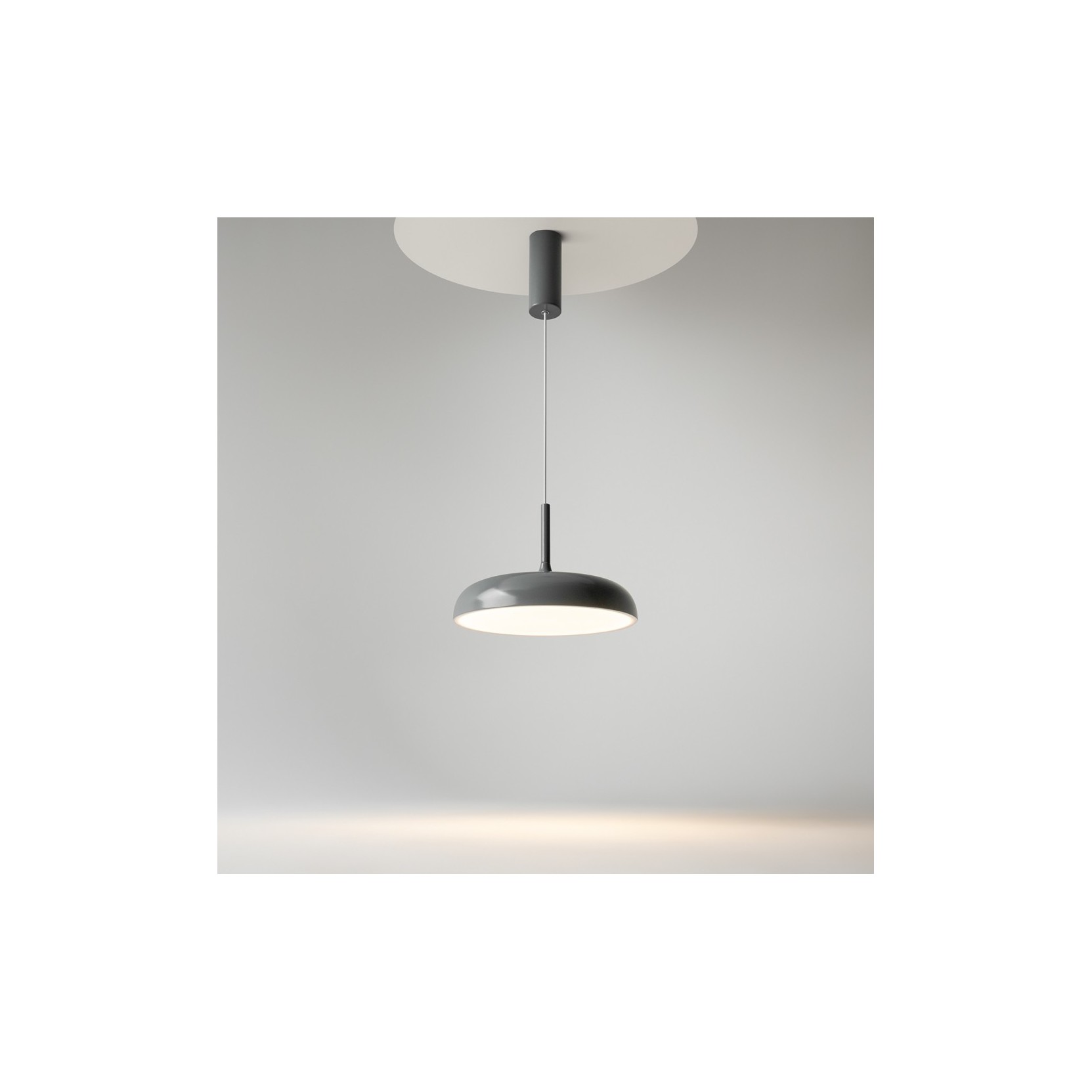 The Gerhard pendant lamp stands out for its clean silhouette and ultra-thin profile. Featuring a shallow dome diffuser in matte black metal, this lamp is designed to project a soft and perfectly homogeneous downward light. Its "minimal-chic" aesthetic makes it a versatile piece, capable of enhancing everything from a hi-tech kitchen to a professional studio or a Scandinavian-style dining area.