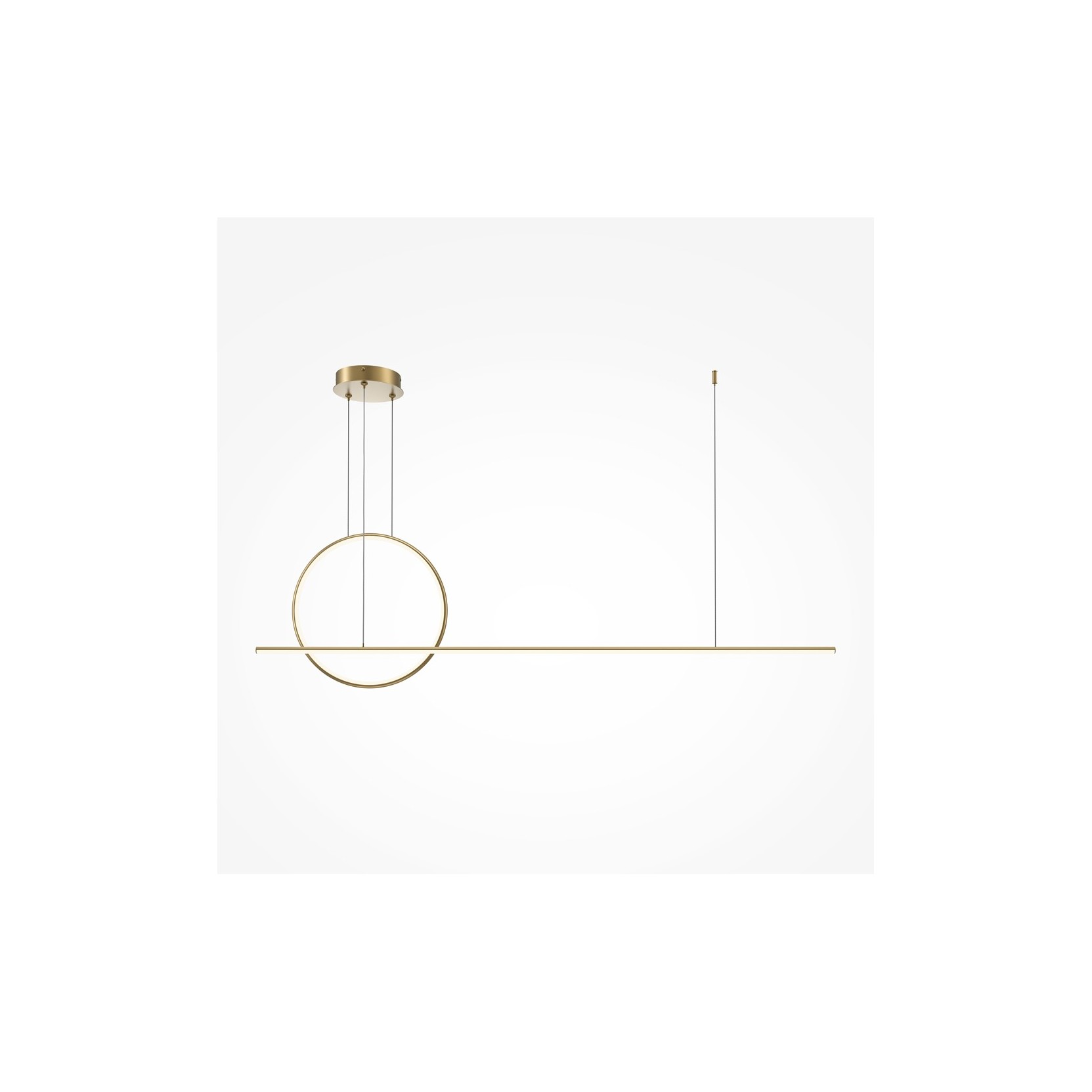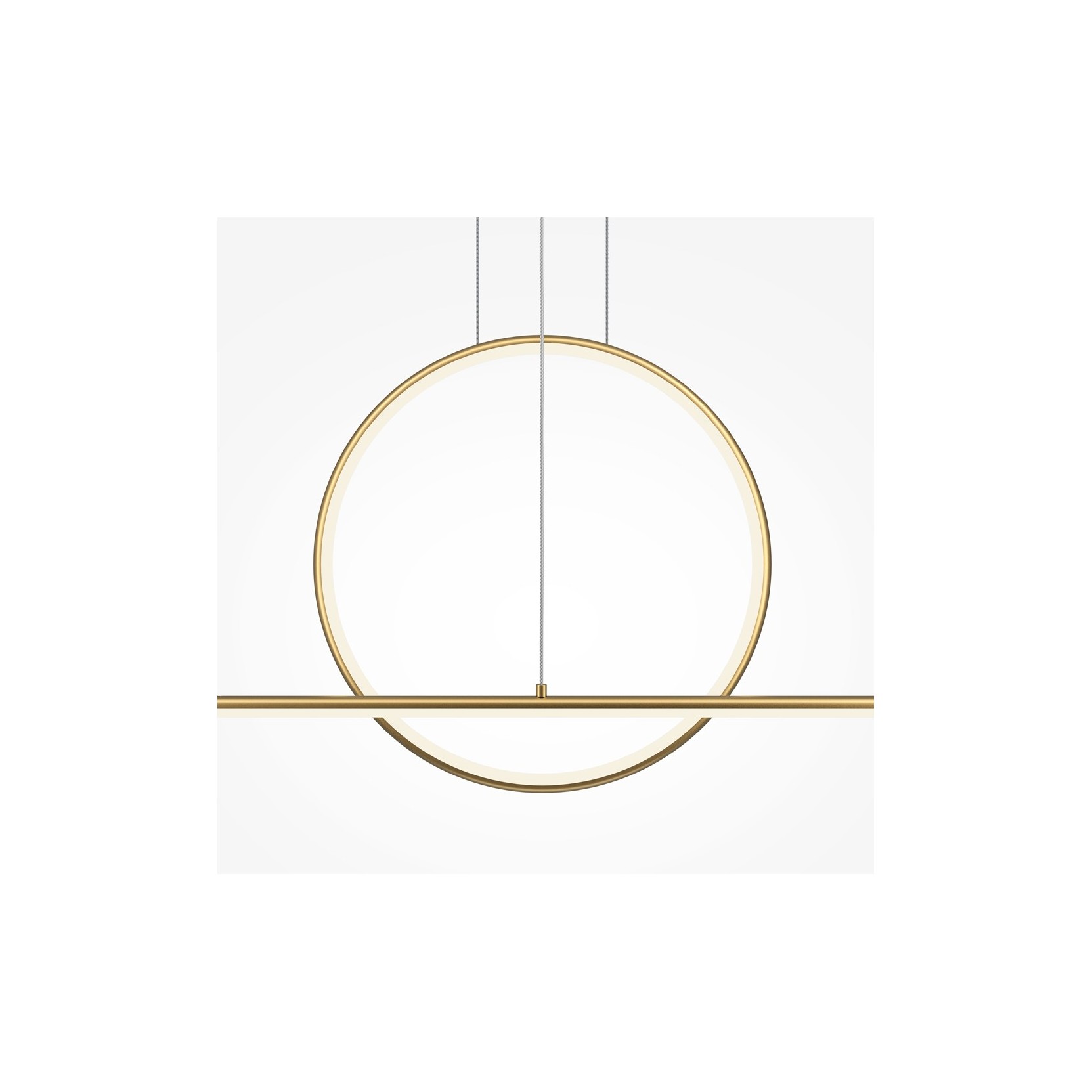 The Halo lamp represents an impeccable synthesis of architectural rigor and poetic elegance. The structure is composed of two pure geometric elements that seem to defy gravity: a perfect luminous circle intersecting an ultra-thin horizontal rod. This asymmetrical composition creates a dynamic visual balance, making the lamp ideal for placement over long dining tables, kitchen islands, or executive desks.