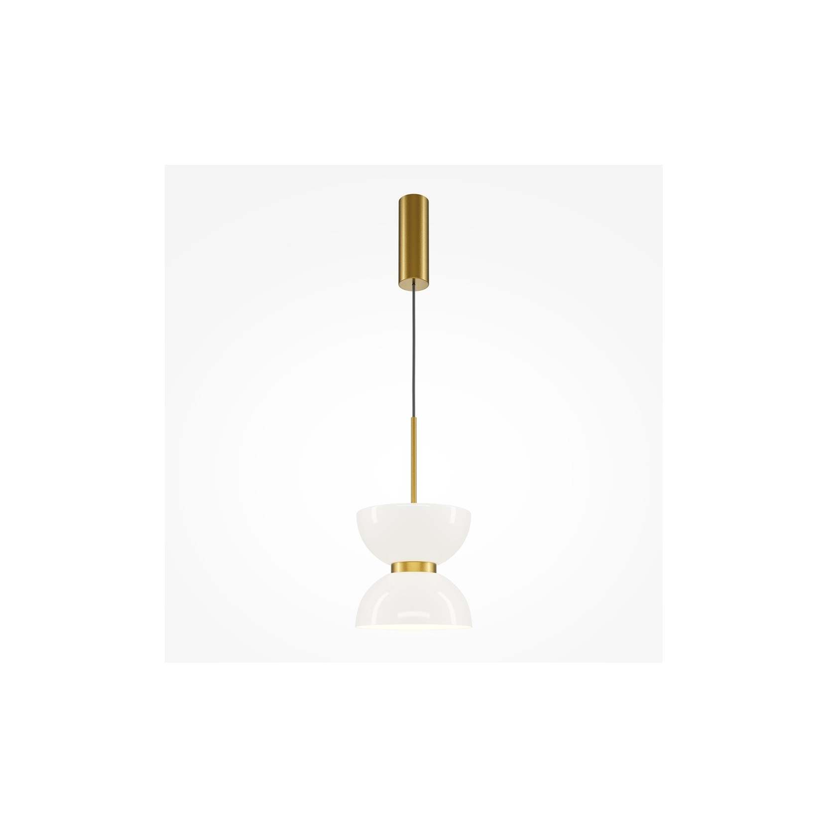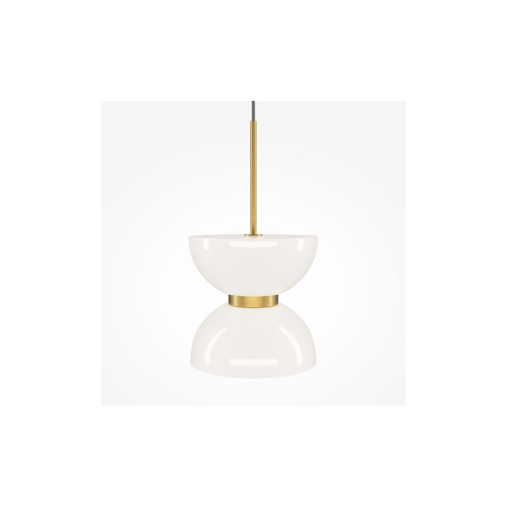 The Kyoto lamp redefines the concept of task lighting through a refined interplay of overlapping volumes. The structure features an upper section composed of two opposed domes, serving as the visual and material centerpiece of the design. Beneath these, a cylindrical diffuser in white opal glass is integrated, emitting a warm and perfectly diffused light.