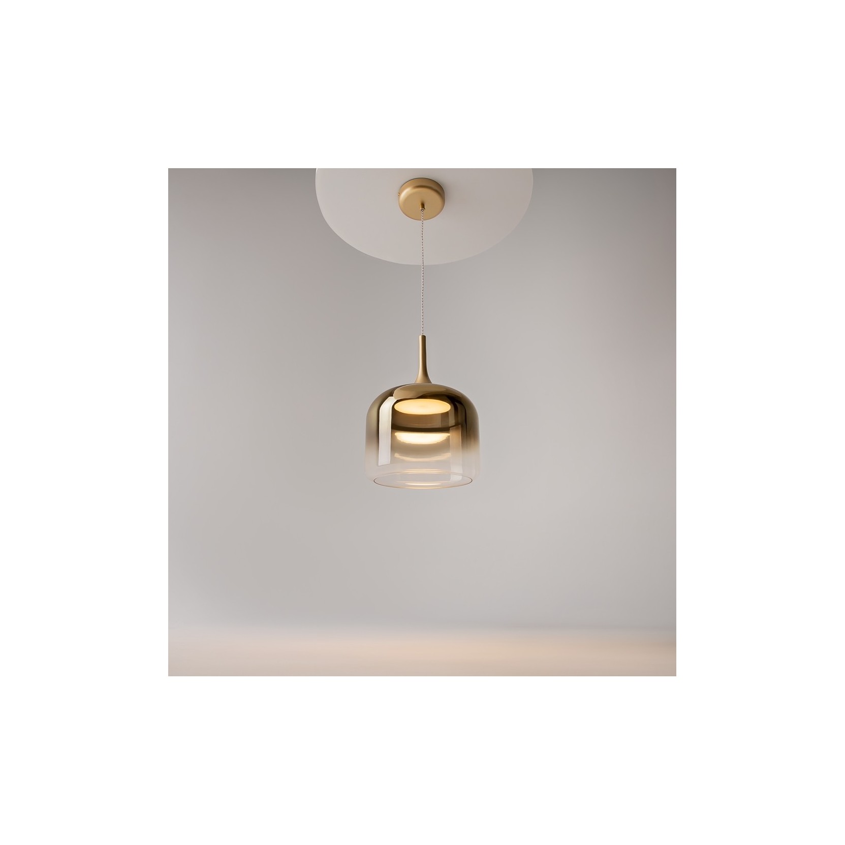 The Spirito suspension lamp is a refined example of contemporary design that blends vintage aesthetics with precious finishes. Featuring a gradient glass lampshade, this lamp creates warm and scenic lighting, perfect for environments seeking a touch of discreet luxury.