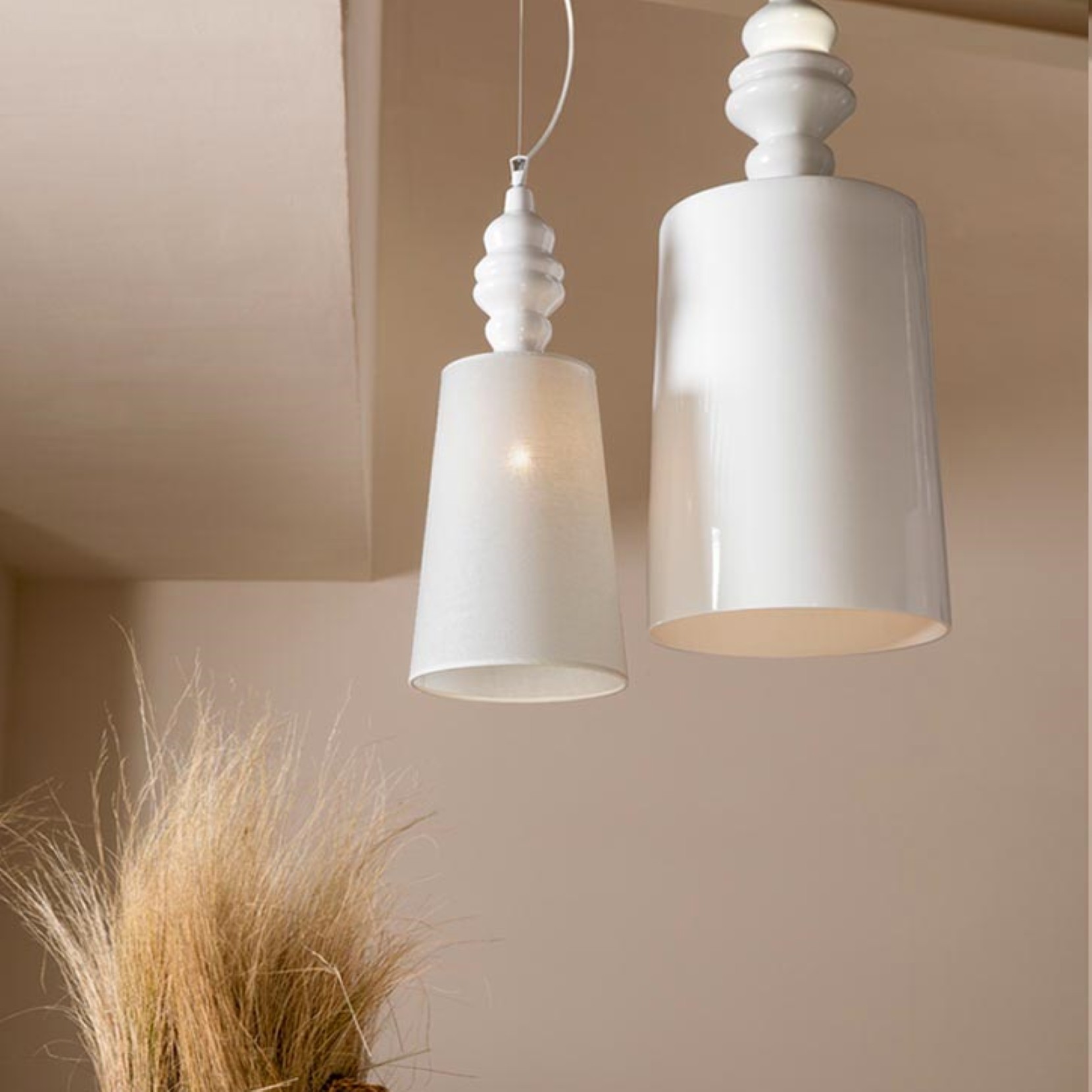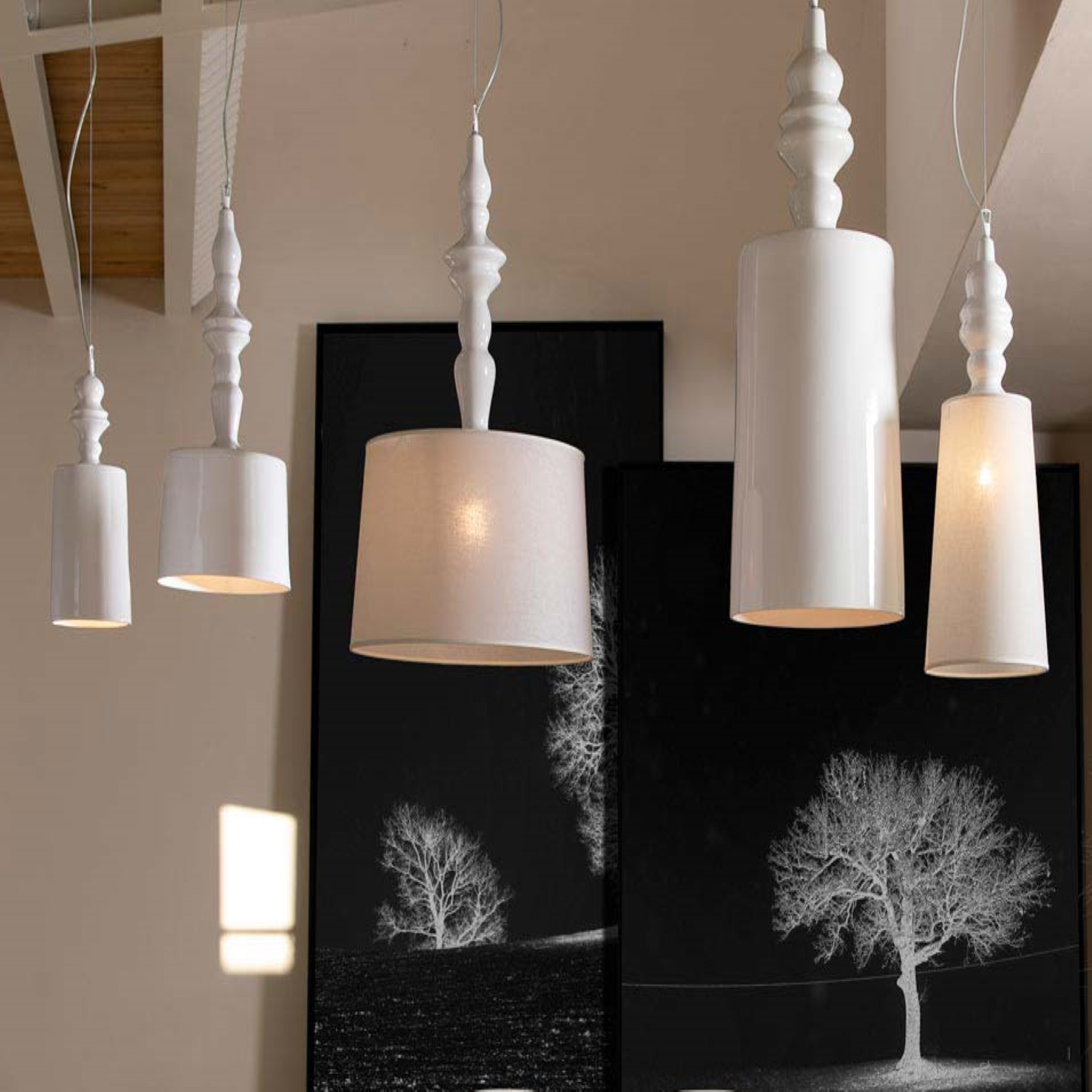 White ceramic structure and lampshade (large narrow suspension)
