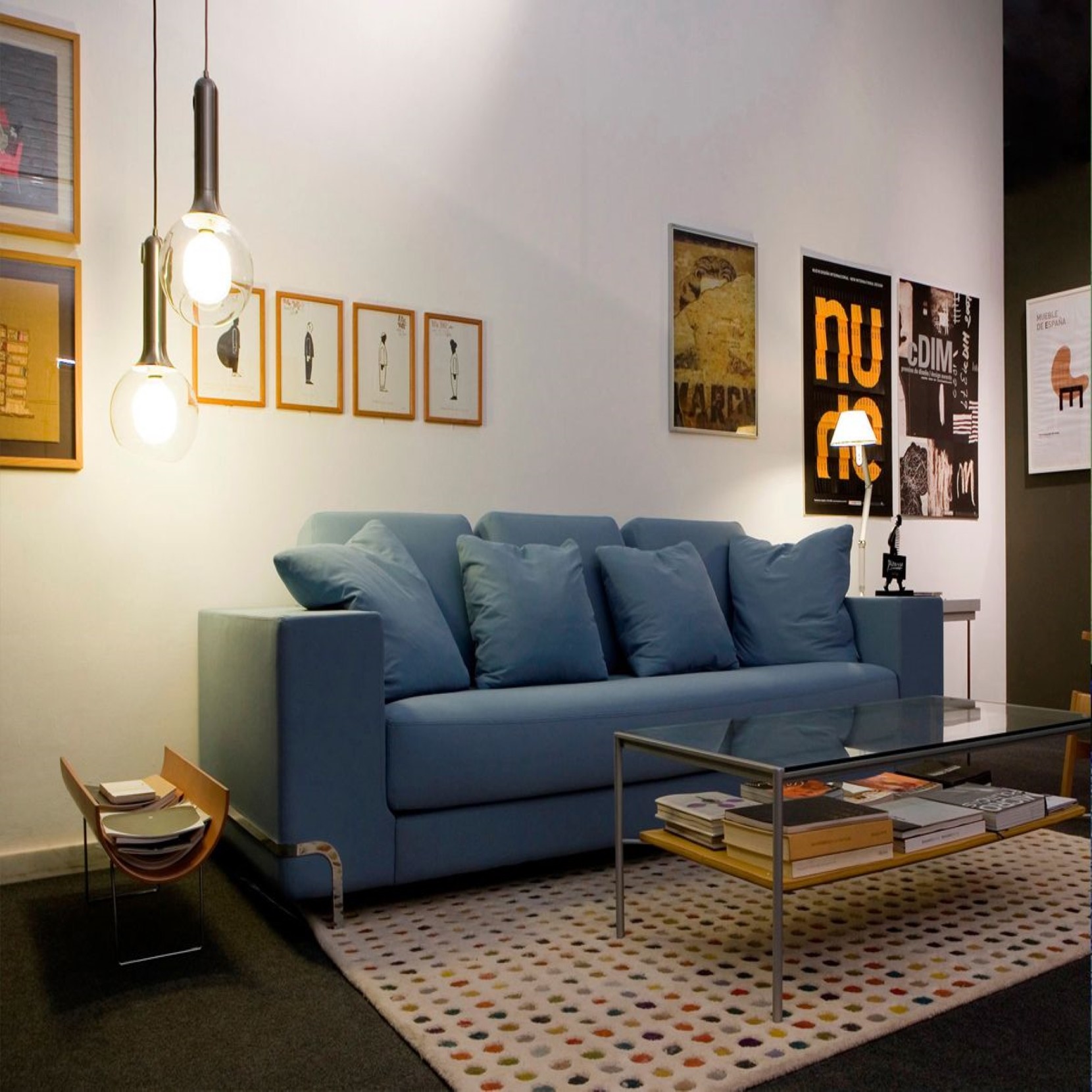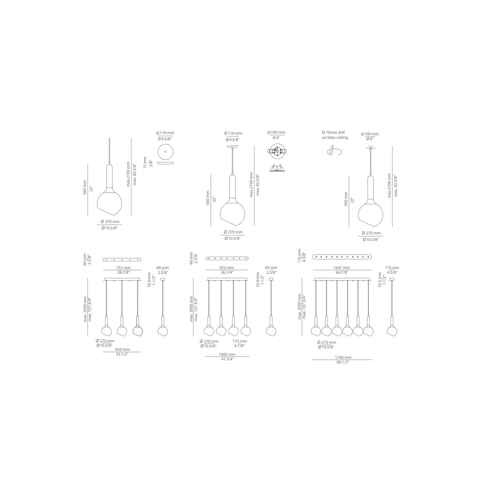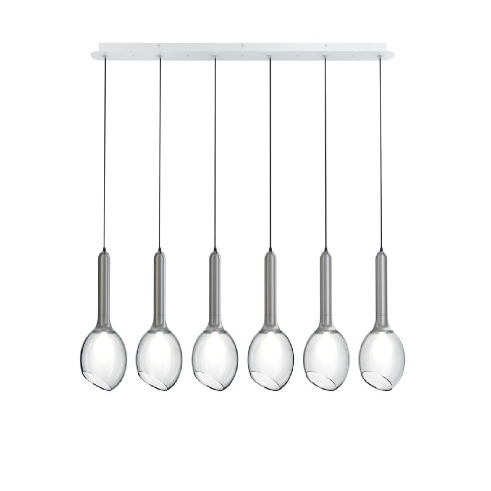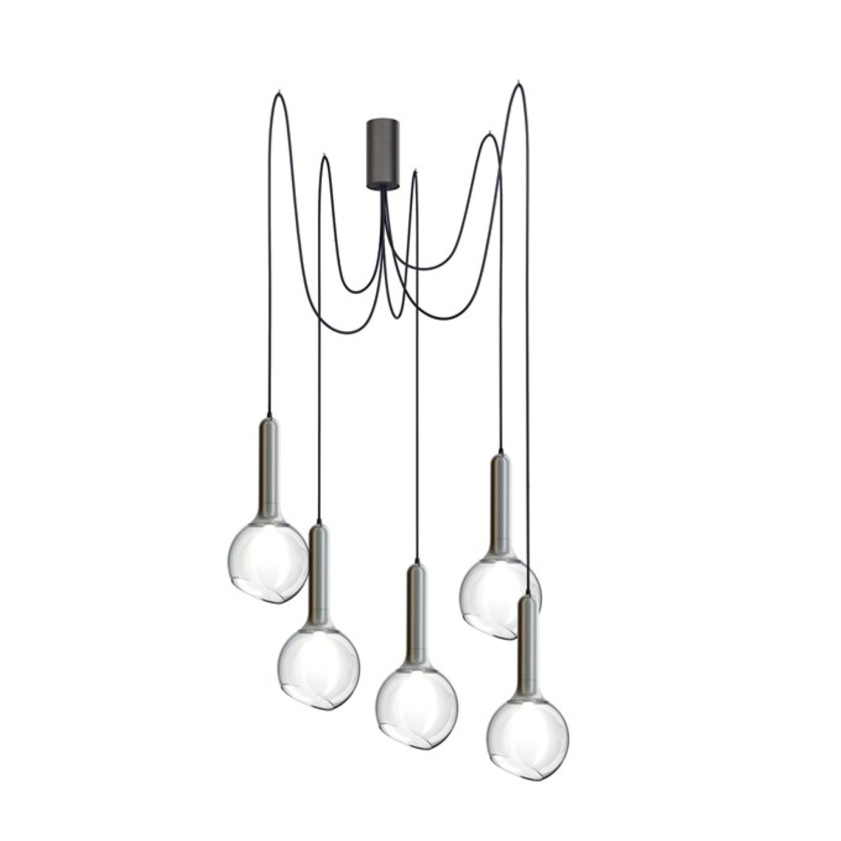 LUCK is a versatile collection, designed by Valencian designer Ximo Roca. The lamp has a bell-shaped metal structure in the center that contains a crystal ball. The bulb inside is completely visible, allowing white light to flow from all sides, giving the effect of an unfinished object thanks to the original cut in the base. Hanging lamp with direct and indirect light in transparent glass, diagonal opening on the bottom. The height is adjustable and can be used on sloped ceilings.