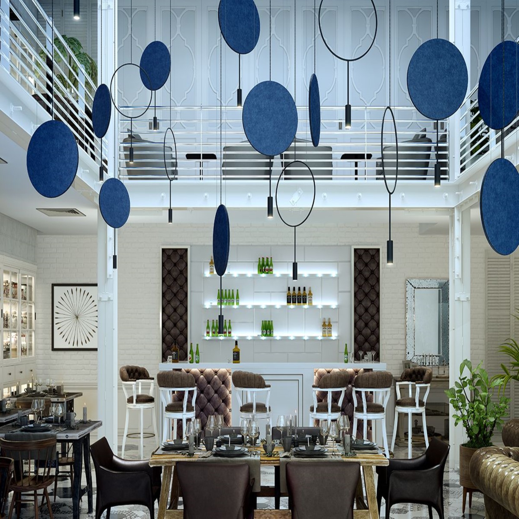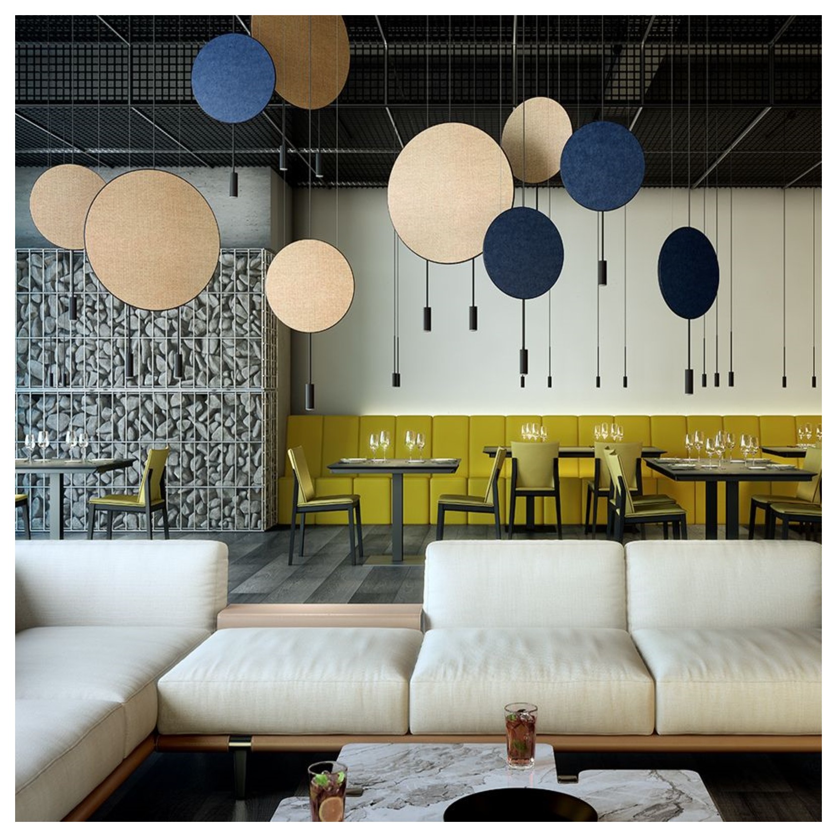 Open circles drawn in the air or panels for fabric panels to soften the sound.