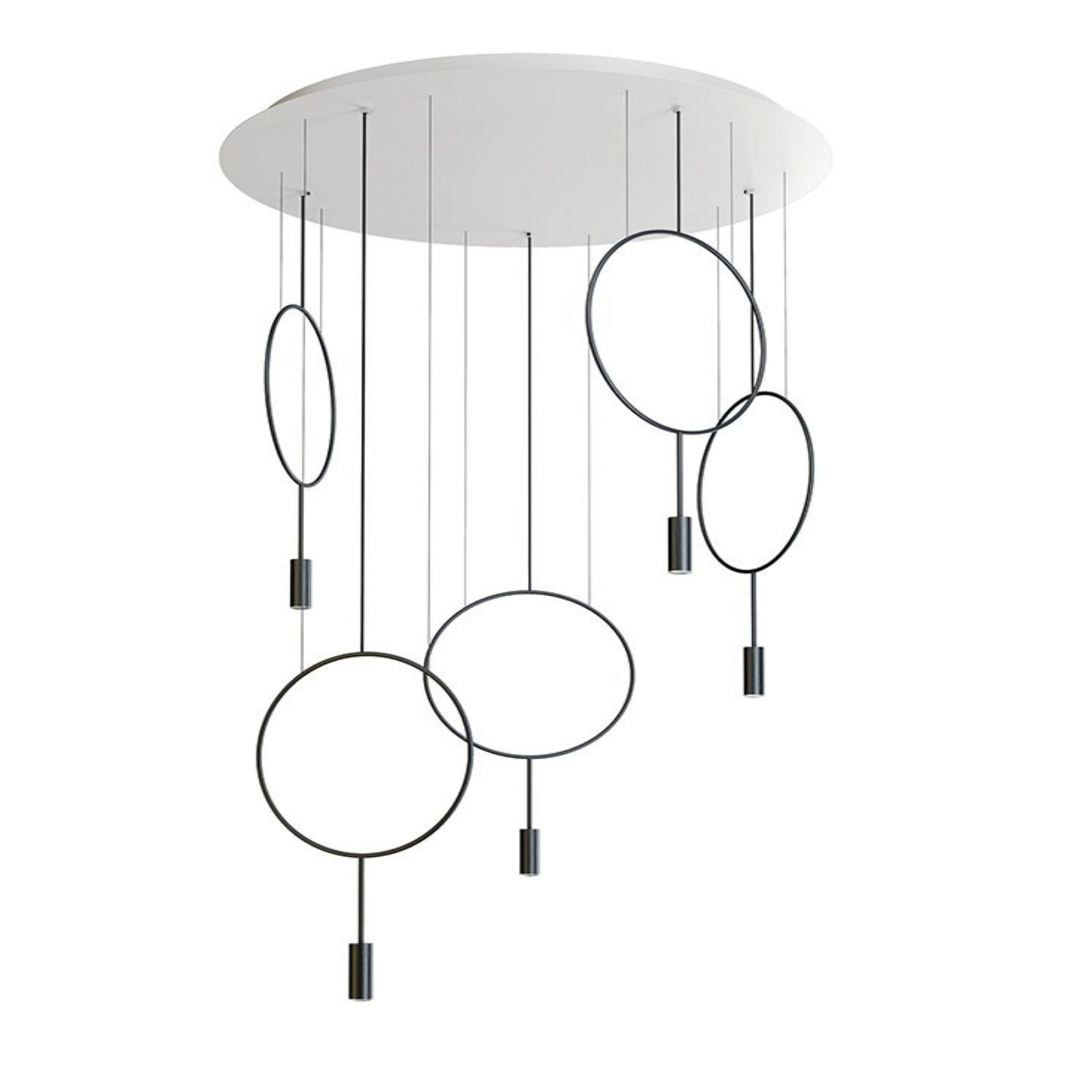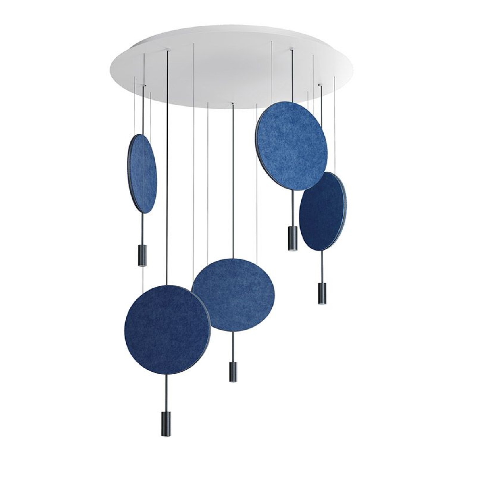 The suspension cylinders have aluminium heads and acrylic diffusers. Revolta can also be used to divide large spaces into discrete areas.