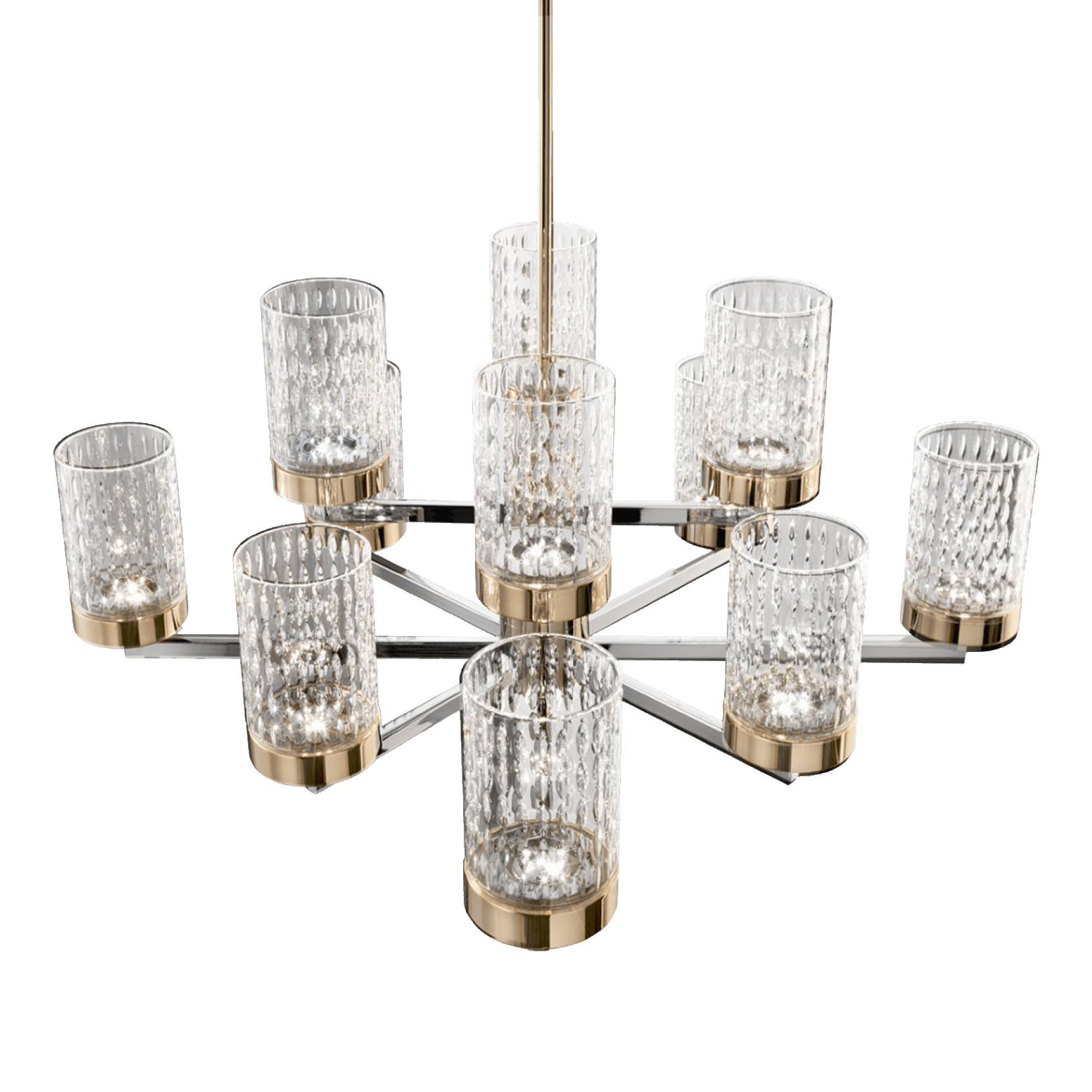Quarzo is a collection of lamps designed by Studio Mamo, made of metal with chrome and light gold finish and carved crystal diffusers. From the particular design, the collection is suitable to illuminate and furnish any type of environment.
