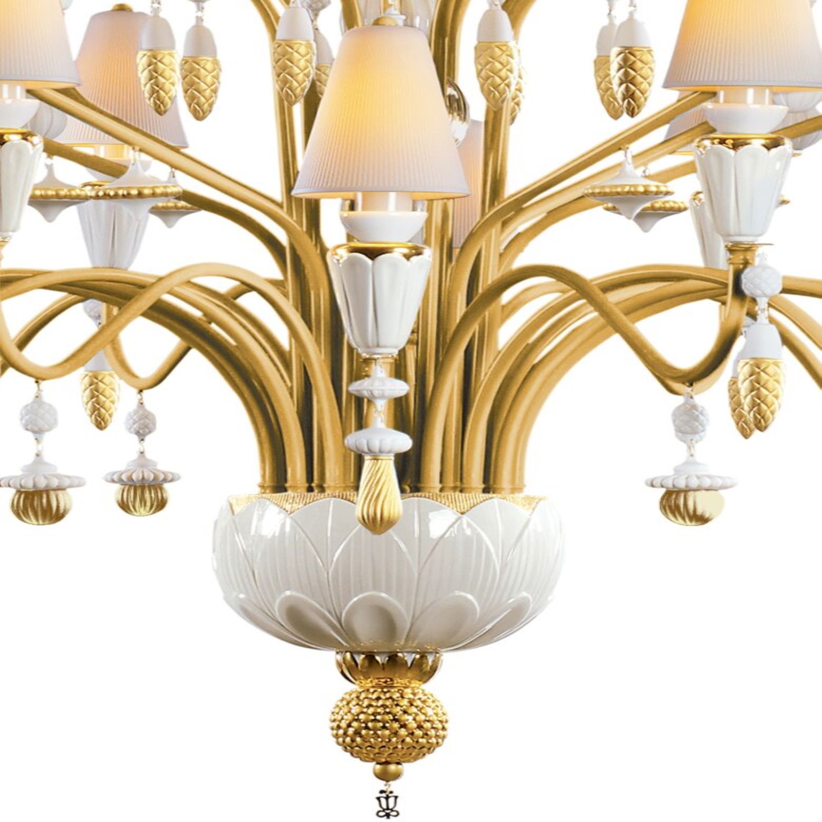 Lladró Ivy and Seed 32 Lights Chandelier. Large Model. Golden Luster