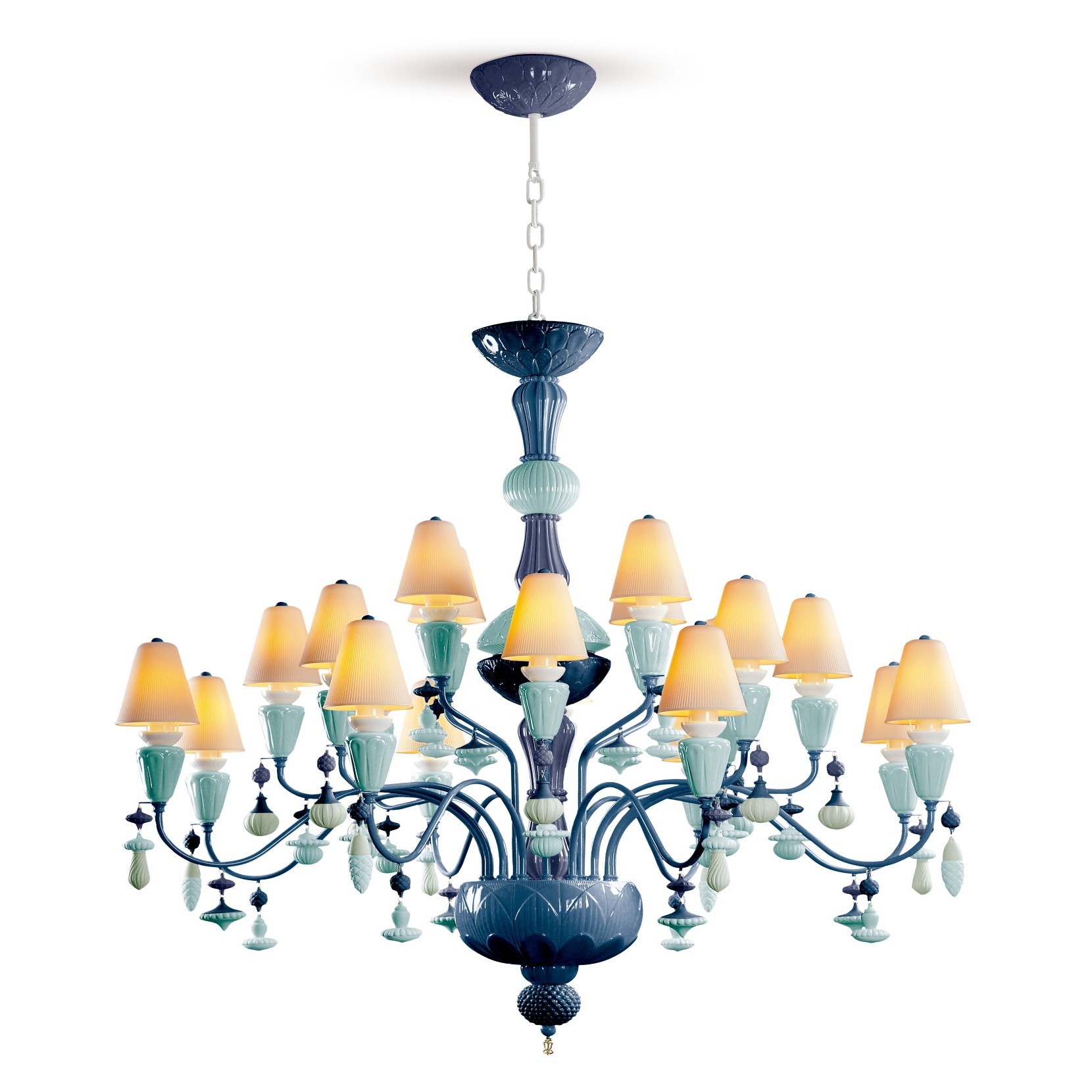 Lladró Ivy and Seed 20 Lights Chandelier. Medium Model