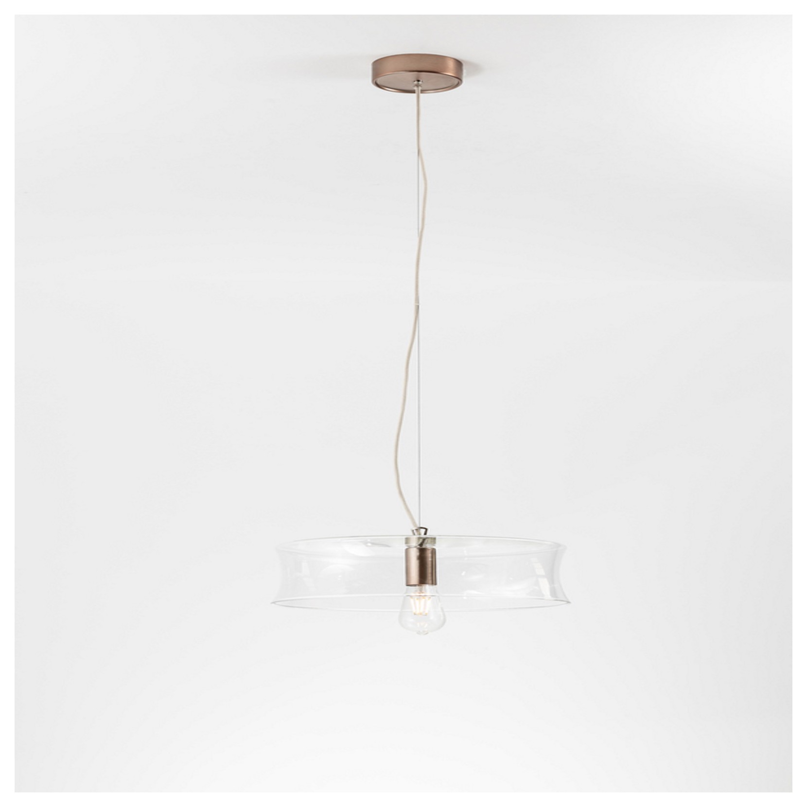 Hind Rabii proposes the suspension lamp 3X3X3. 3X3X3 M1 - Glass T is equipped with an innovative elegance, different from the standard canons. The pendant lamp is ideal for any interior, in fact it can adapt to any context, given by the elegance of the blown glass of the structure.
