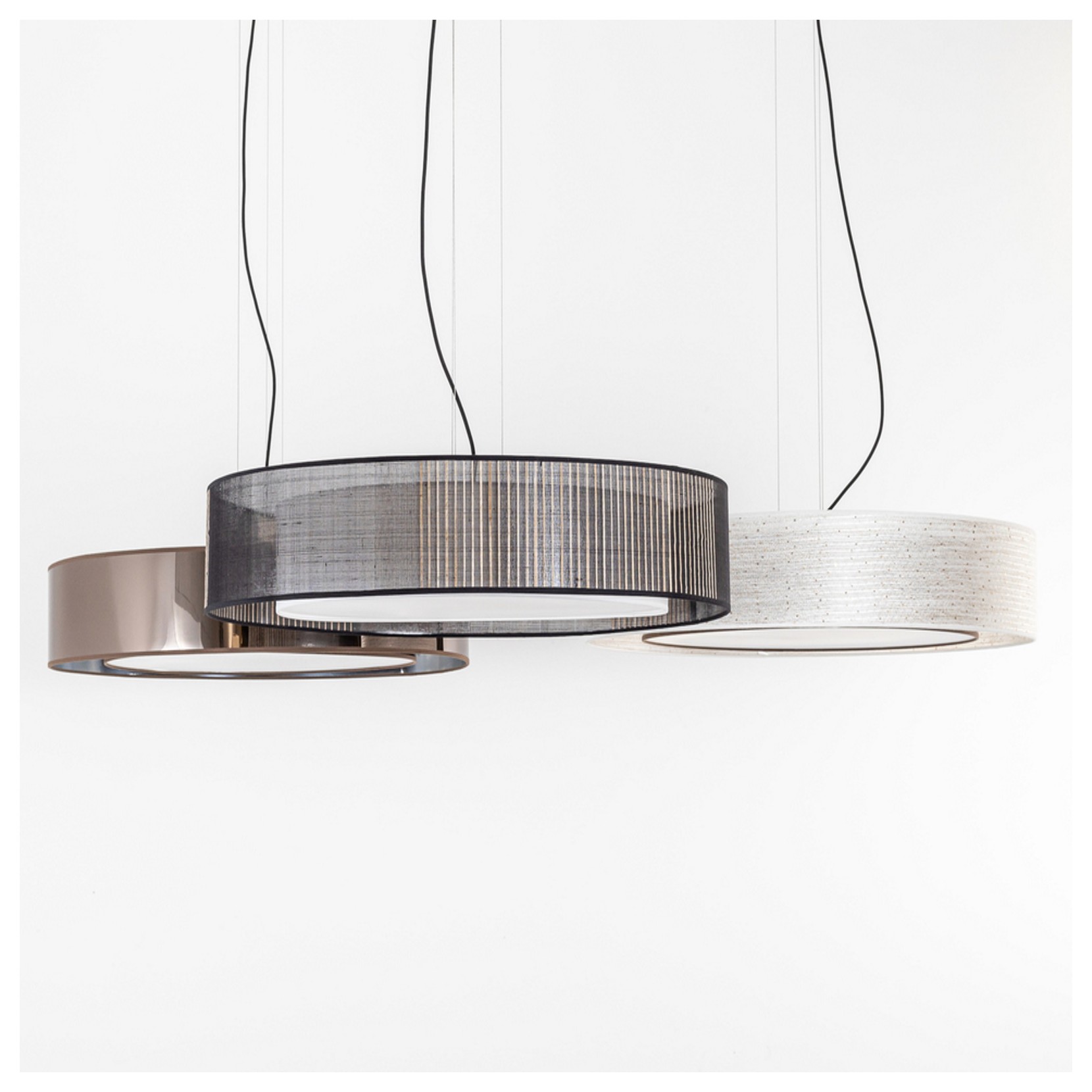 Hind Rabii proposes the suspension lamp Tenue de Soirèe. Tenue de Soirèe is a lamp with a strong visual impact due to its shape and width. The lamp is adaptable to many public and private contexts, from a bedroom to the entrance of a hotel. Available in different finishes.