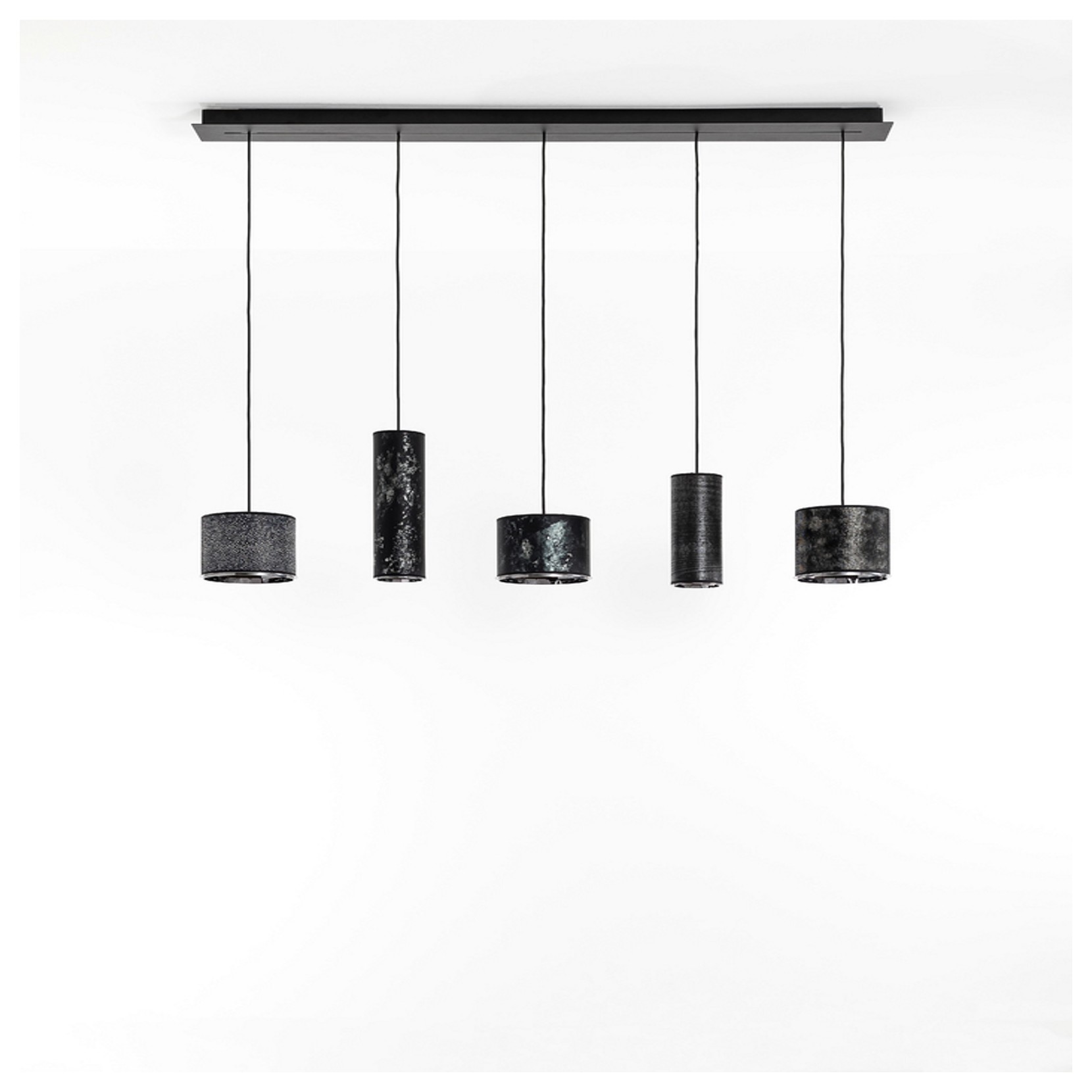 Reflectors lamp is a cylindrical lampshade in velvet or fabric printed in different finishes, metal reflector with copper or black chrome aluminum.