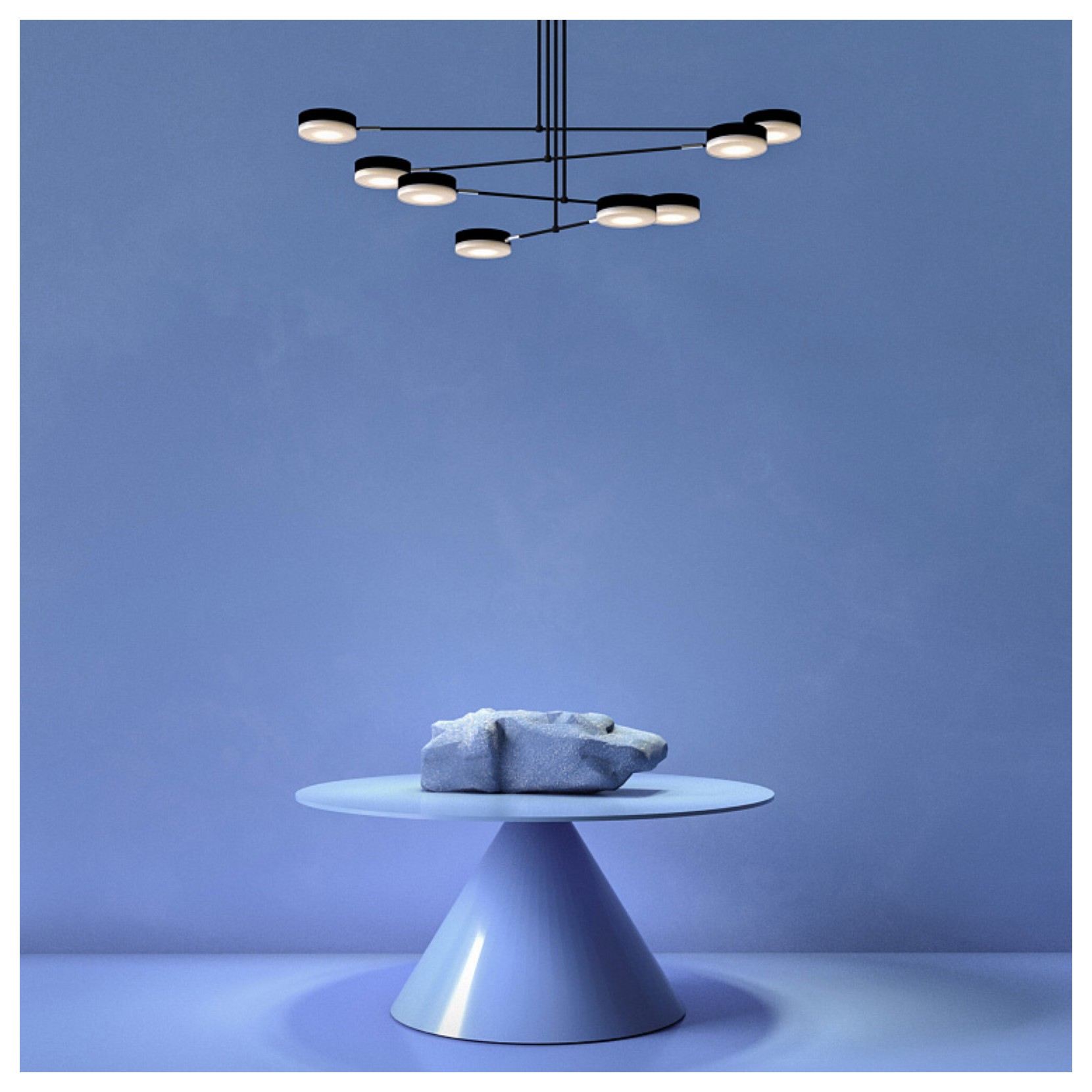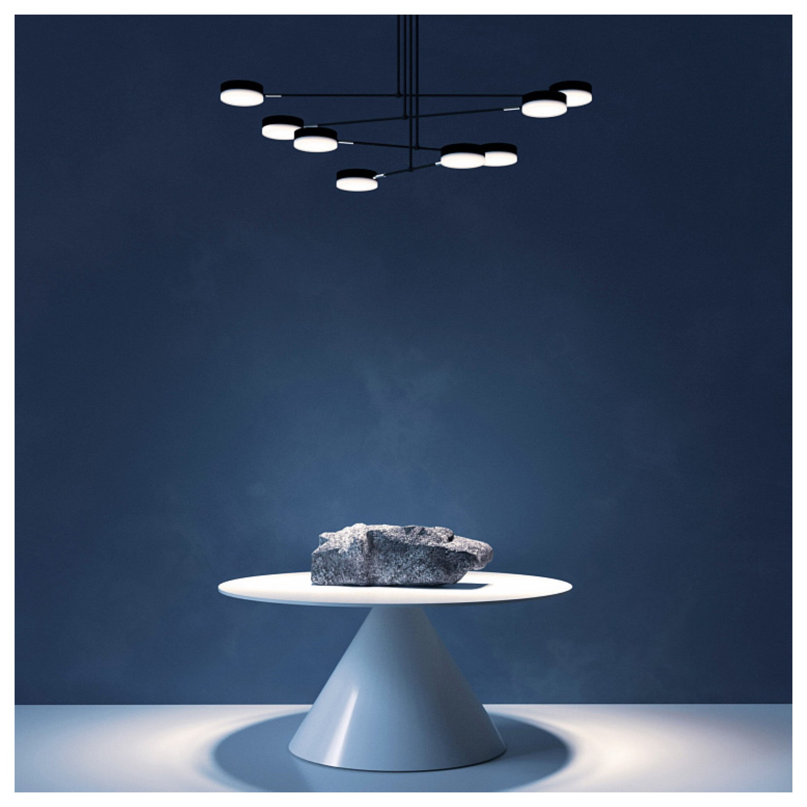 The FAD pendant lamp is presented with cylindrical diffusers that rotate at 340, in horizontal plane and at 90, in vertical plane. . The structure of the lamp is made of metal with black acrylic. Looking at the lamp you have the impression of looking at a disc that hovers in the ceiling of the house.