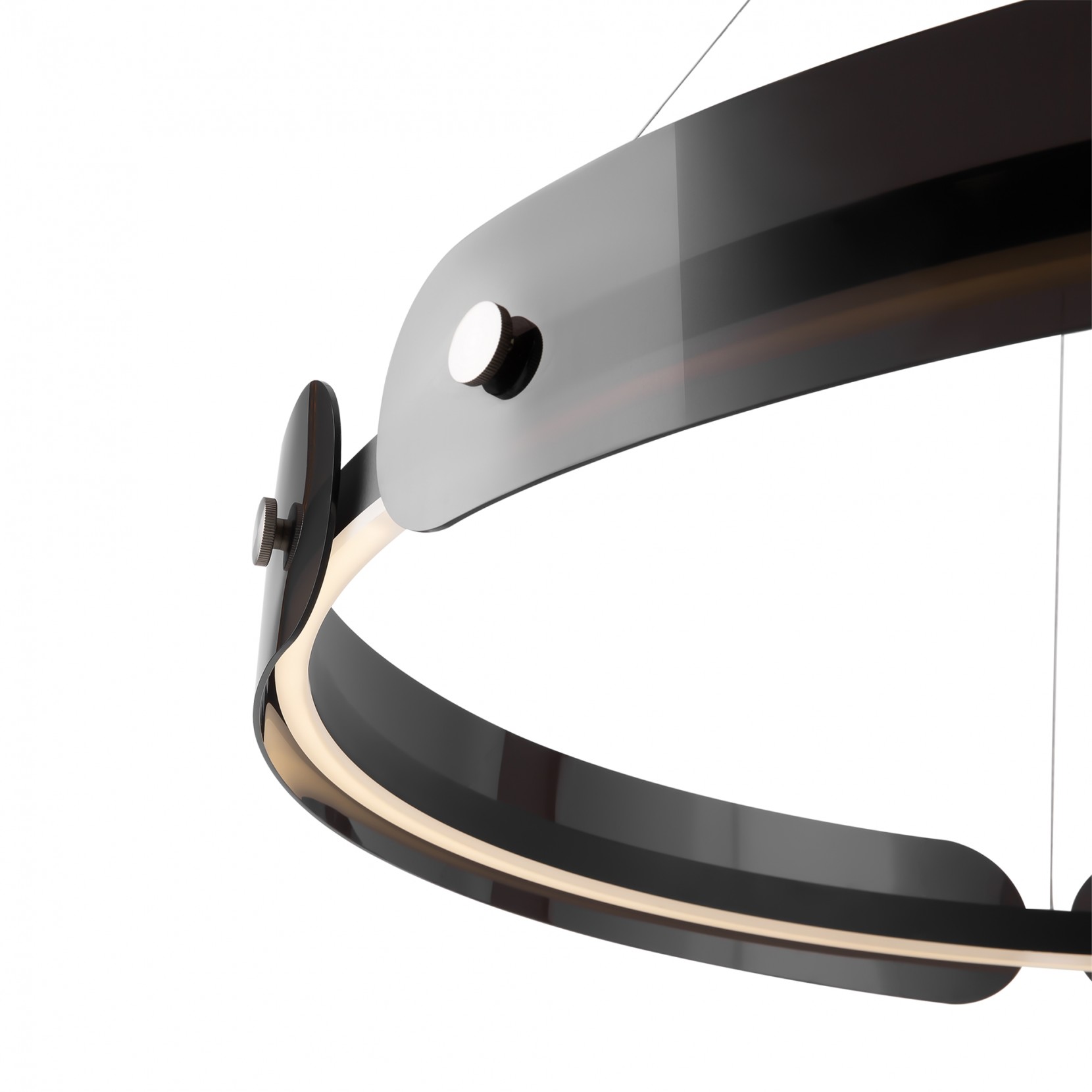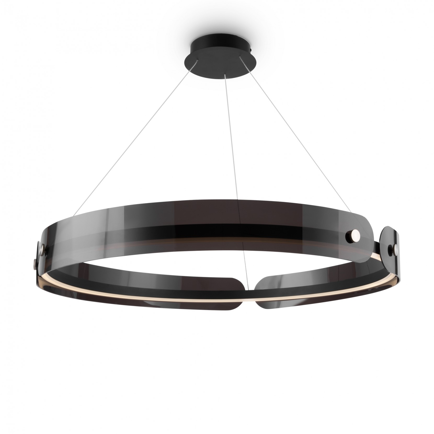The Interstellar pendant lamp with geometric but soft shapes, is presented with a metal structure with decoration in acrylic sheets. The height of the pendant lamps is adjustable, the light is an LED strip (4000K).