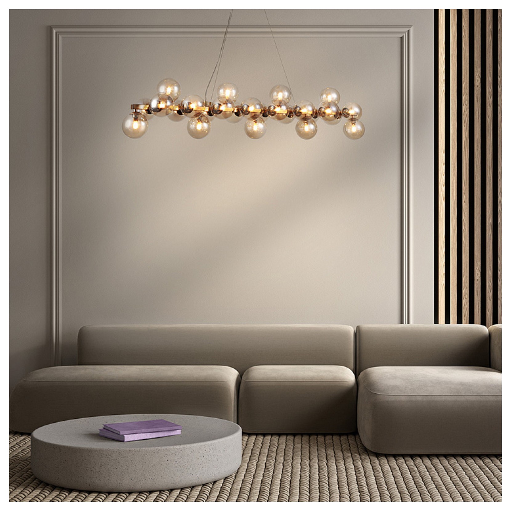 The DALLAS pendant lamp consists of a metal structure with blown glass elements in amber or smoked color. The sumptuous lamp is suitable for both modern and classic environments. Dallas is the lamp that can make even the simplest environments of everyday life unique and distinctive.