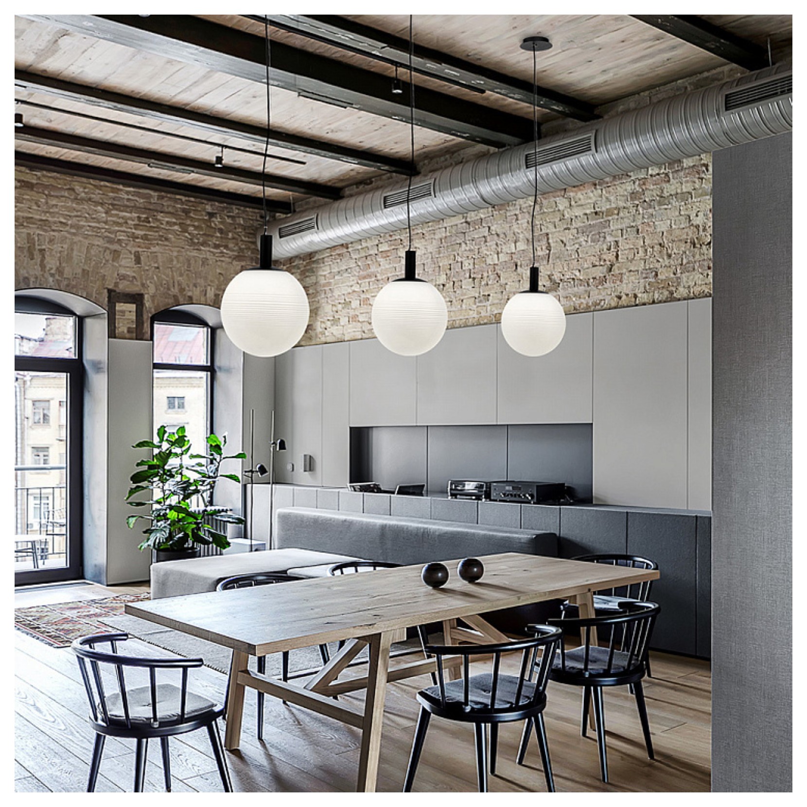 PERLAS is the pendant lamp with clear or white glass diffusers. The black painted metal structure. Inolotre the height of the lamp is adjustable by the length of the rope.