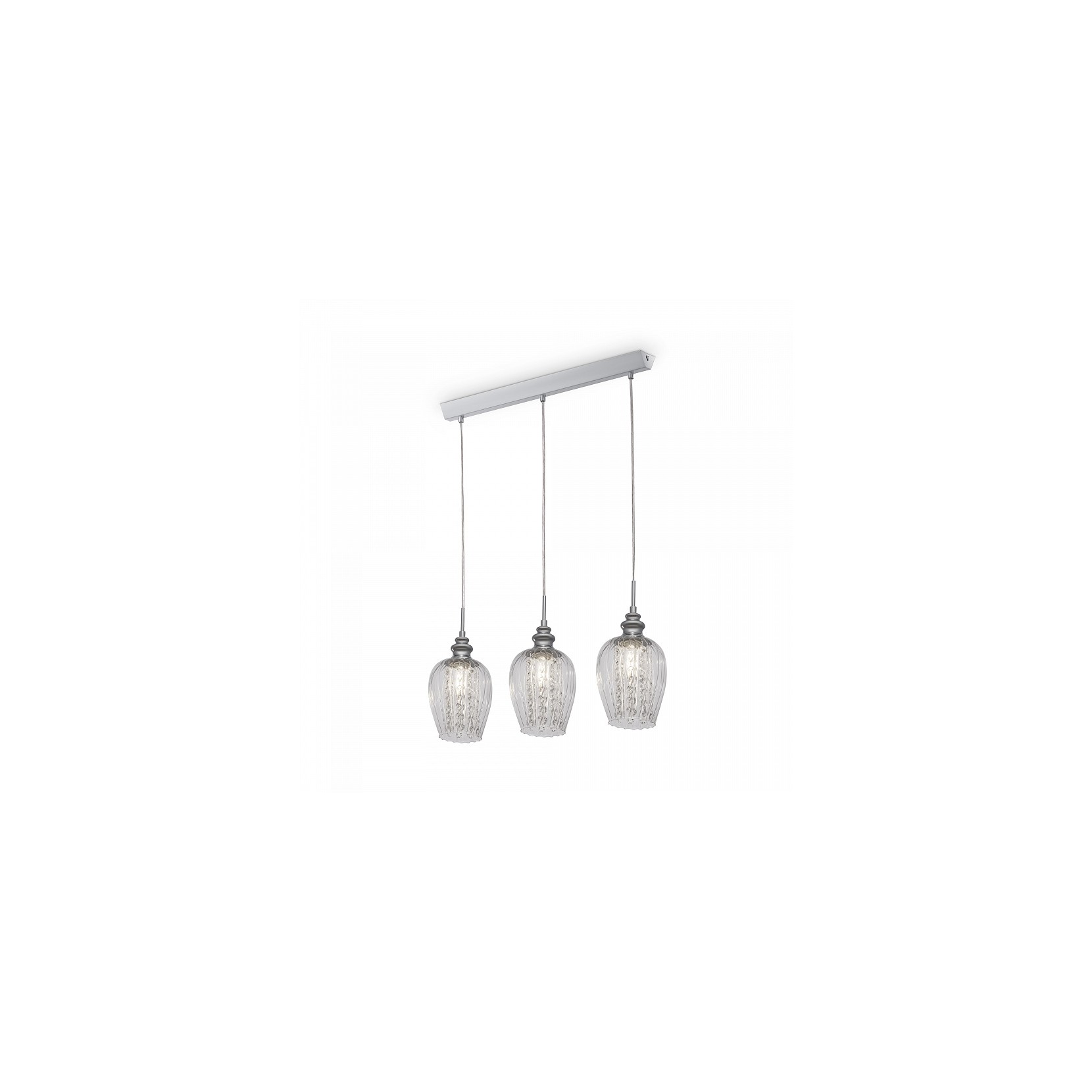 The BLUES pendant lamp represents the essence of elegance. The chromed metal structure of Blues is embellished by a smoked blown glass diffuser where inside there are decorative crystal pendants.