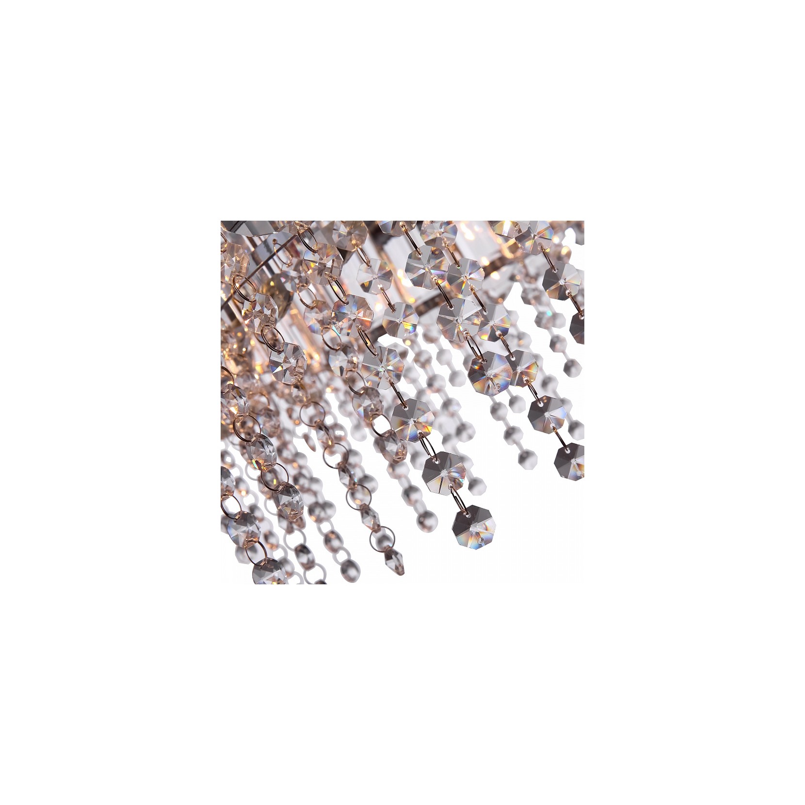 The HAIL pendant lamp with chromed metal structure and chrome finish. HAIL sees the combination of two types of glass cutting. A large bislungo cut and a spherical cut from pendant jewels. The models of the series are pendant or in the version with 6,8,12 lights. The height of the lamp is adjustable.