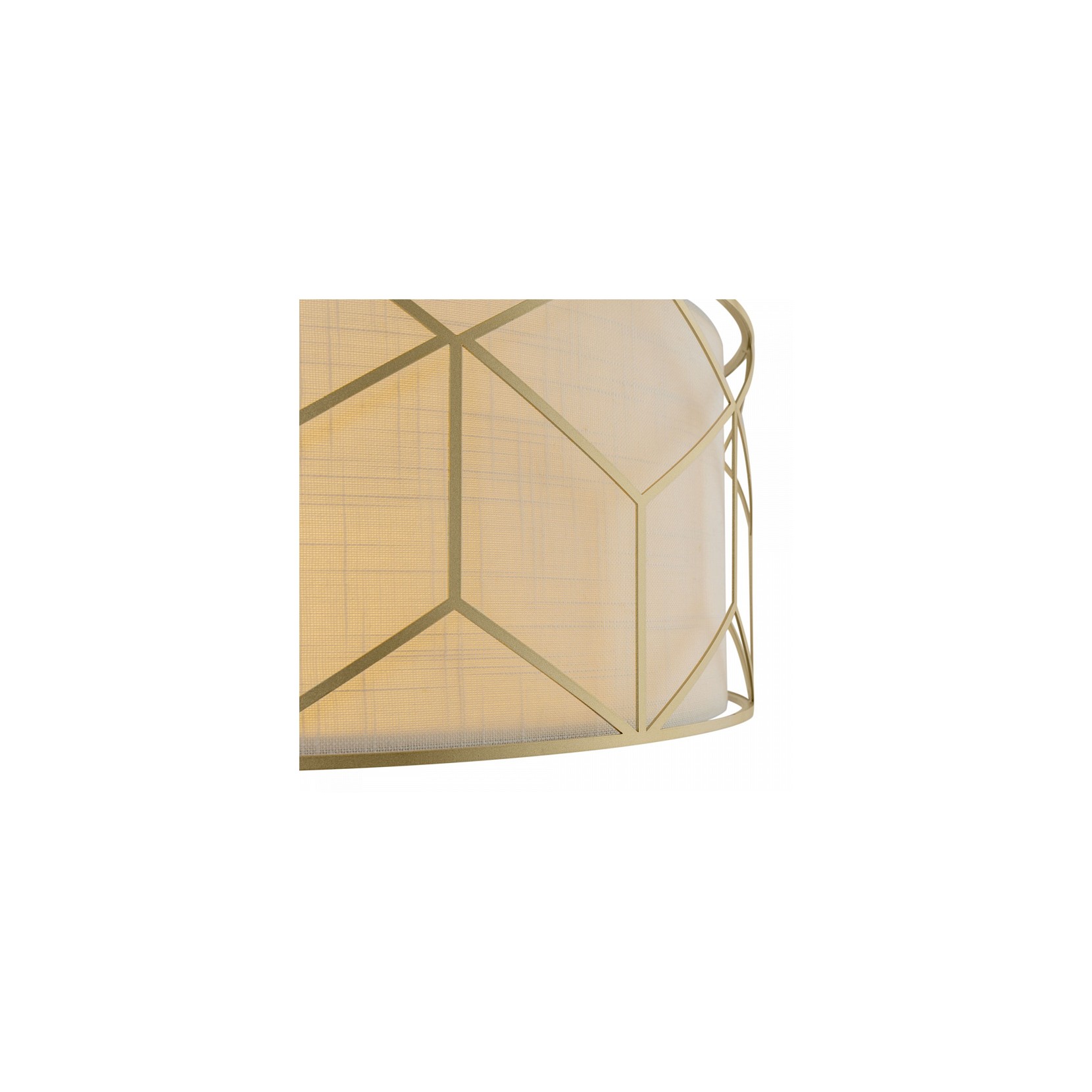 The MESSINA pendant lamp consists of a metal structure with a design that makes a clear reference to the geometric patterns in the gold finish. Messina with its structure seems to wrap around the PVC lampshade covered in fabric as if it wanted to keep a treasure.