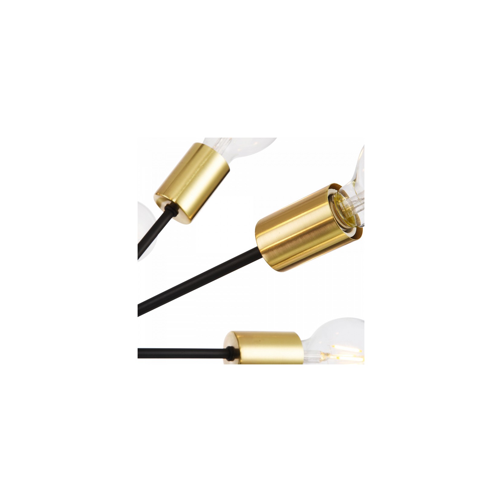 The JACKSON pendant lamp with its black metal structure and golden lamp holder recalls the explosion of fireworks that illuminates the sky. The center of the spherical structure is connected to metal rods that branch off.