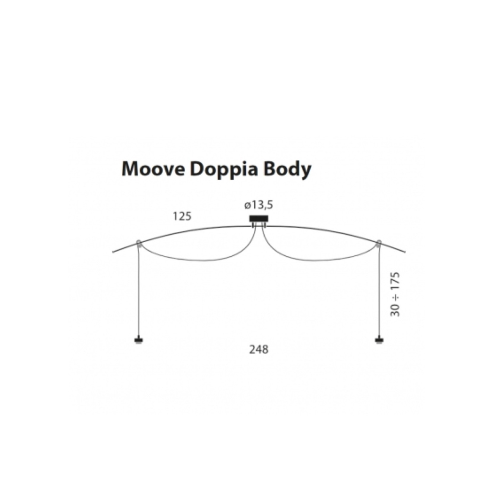 La lámpara de techo MOOVE está compuesta por una estructura con una varilla de fibra de carbono enganchada a un rosetón circular pintado negro. La estructura es rotativa 180° en horizontal, lo que permite la colocación de la fuente luminosa, dada su particular flexibilidad. La extraordinaria característica de Moove radica en el innovador movimiento de la pantalla, donde se puede ajustar la altura y la rotación.