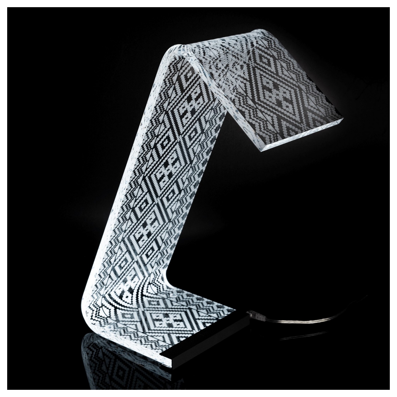 The C-LED table lamp reflects the essence of modern and original design, this is because laser engravings offers a minimal touch. The lamp made of acrylic in addition to engraving and laser cut and folded by hand, this allows the lamp to be durable and stable, allowing it to fit anywhere in the house.